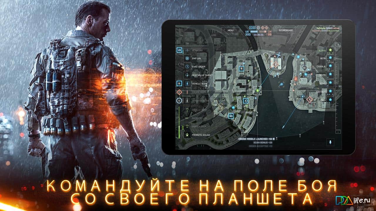 BATTLEFIELD 4 Commander - с помощью данного приложения для вашего планшета вы сможете играть в режиме командира в BATTLEFIELD 4. С помощью этого помощника, вы можете снабжать бойцов важной информацией, так как вся карта у вас будет просто на ладони.