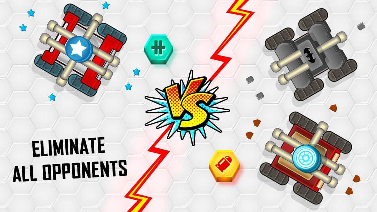 Battle.io – многопользовательская игра на андроид, где вы будете управлять небольшим танком. В этой игре с видом сверху вы будете управлять танком и стараться уничтожить всех противников и остаться один на поле. Перемещайтесь по многочисленным и разнообразным локациям и ведите непрерывный бой с противниками стараясь уничтожить больше танков и получить больше монет. Улучшайте и апгрейди свой танк, применяя к ними новое мощное оружие, готовя танк к решающей битве. Продержитесь как можно дольше на игровом поле и получите в награду здоровье и очки. Бросайте вызов друзьям и другим игрокам со всего мира и докажите всем что вы лучший.