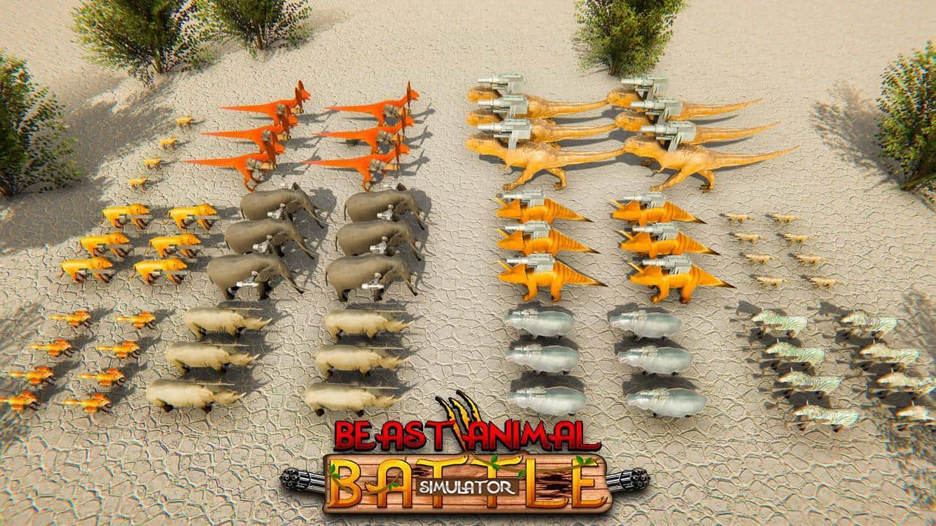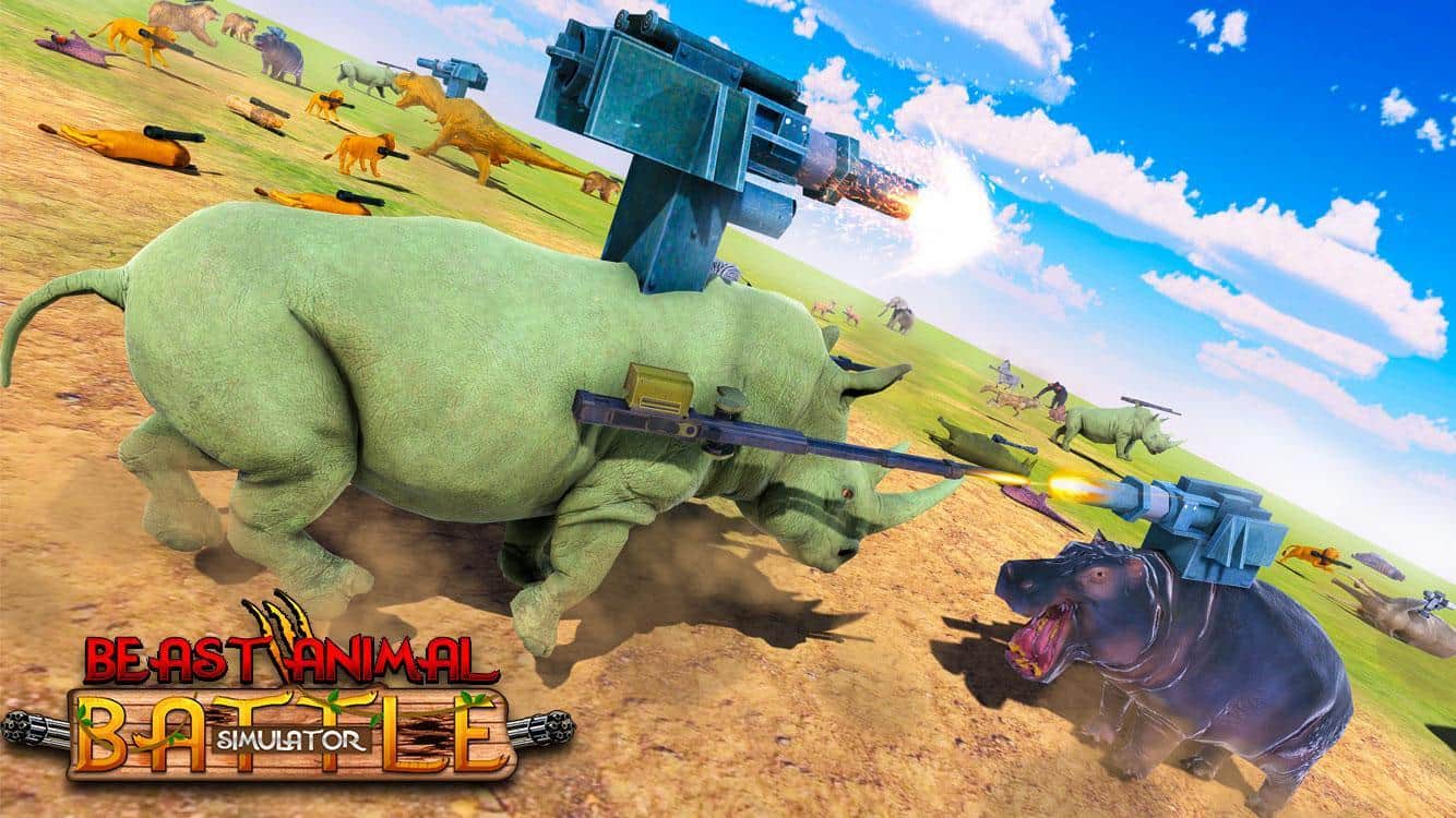 Beast Animals Kingdom Battle: Epic Battle – примите свое участие в масштабном сражении животных на обширных локациях. В этой игре вы возьмете под свой контроль армию состоящую из львов, волков, зебр, слонов, носорогов и динозавров. Управляйте одновременно разнообразными животными и ведите бой с противниками. Каждое животное в этой игре будет оснащено современным боевым оружием, пулеметами, гранатометами и другими видами оружия. Перемещайтесь по локациям и уничтожайте противников, получая очки и бонусы.