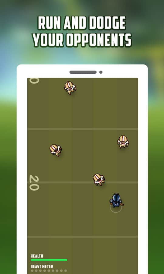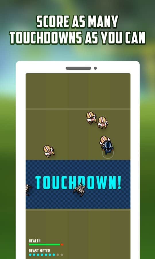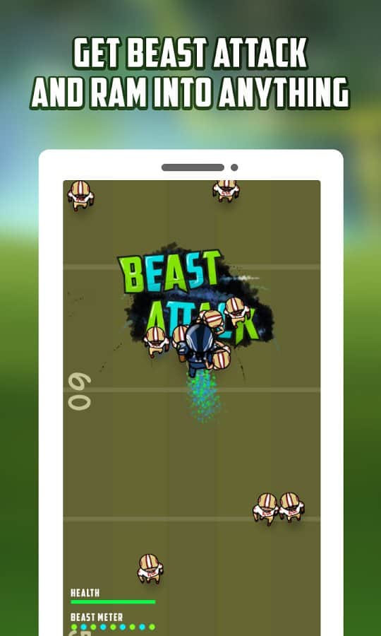 Beast Attack (Football) – управляйте футболистом который должен пройти через все поле и заработать желанный тачдаун. В этой игре вы будет управлять нападающим, который бежит по полю и обходить защитников соперников и старается донести мяч в зону своих оппонентов. С помощью одного прикосновения пальца к экрану управляйте игроком команды американского футбола и избегайте встречи с врагами. По пути собирайте многочисленные усиления и бонусы, которые позволят вашему игроку беспрепятственно двигаться дальше и сокрушать все преграды на пути к заветной цели. Набирайте достаточное количество очков и устанавливайте свой рекорд в этой игре.