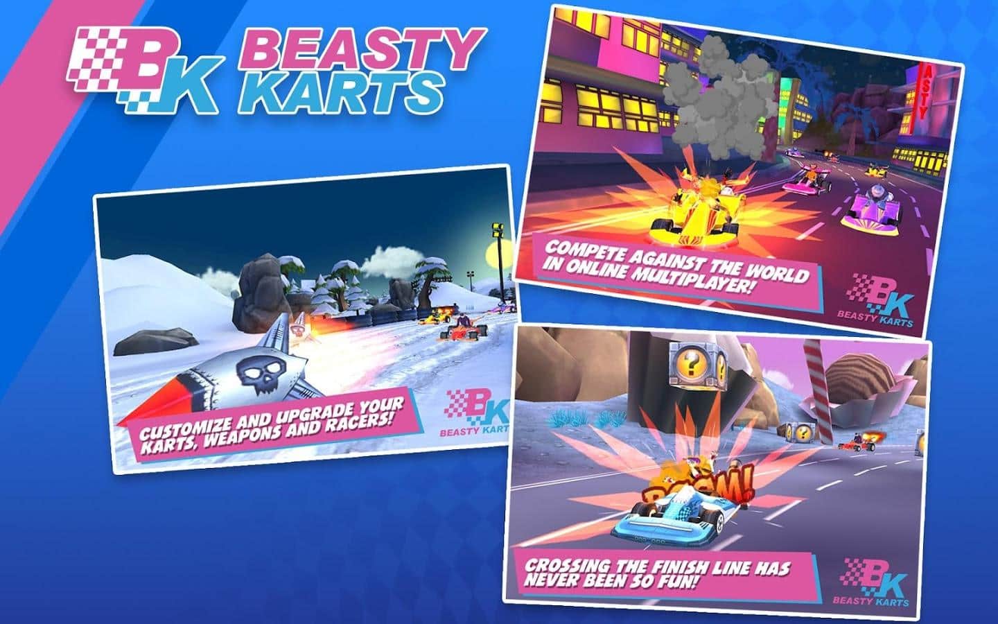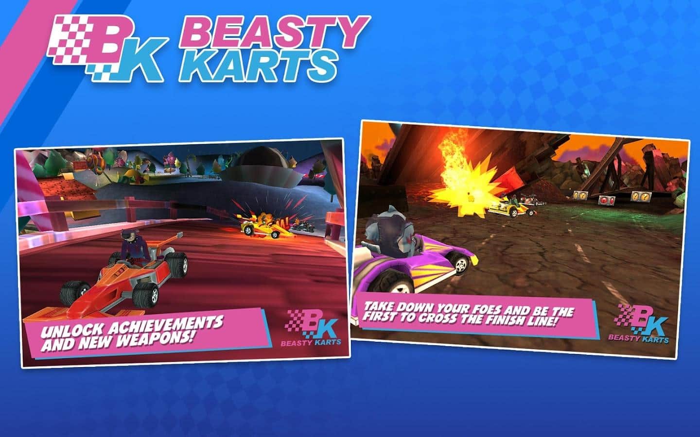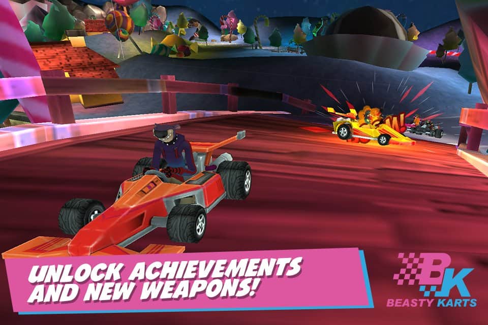 Beasty Karts – весёлые, аркадные гонки в которых вам необходимо гонять на своей тачке и попутно уничтожать всех своих оппонентов на протяжении двенадцати сложных, но в тоже время интересных трасс. В игре представлен достаточный ассортимент картов с различным дизайном. По мере прохождения игры можно улучшать оружие, тем самым уменьшая шансы на выживание ваших врагов. В однопользовательском режиме вы можете оттачивать ваше мастерство и повышать навыки вождения.