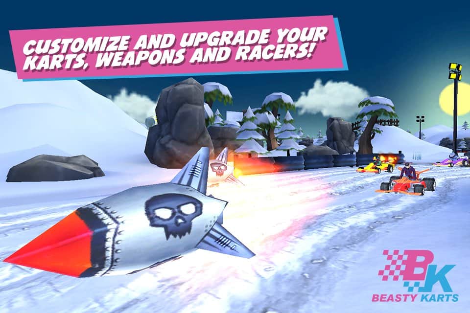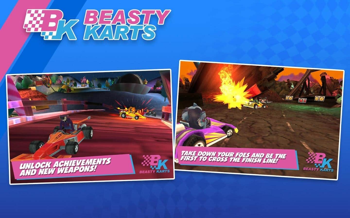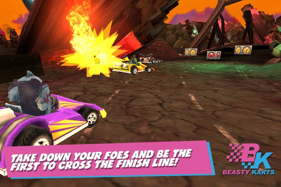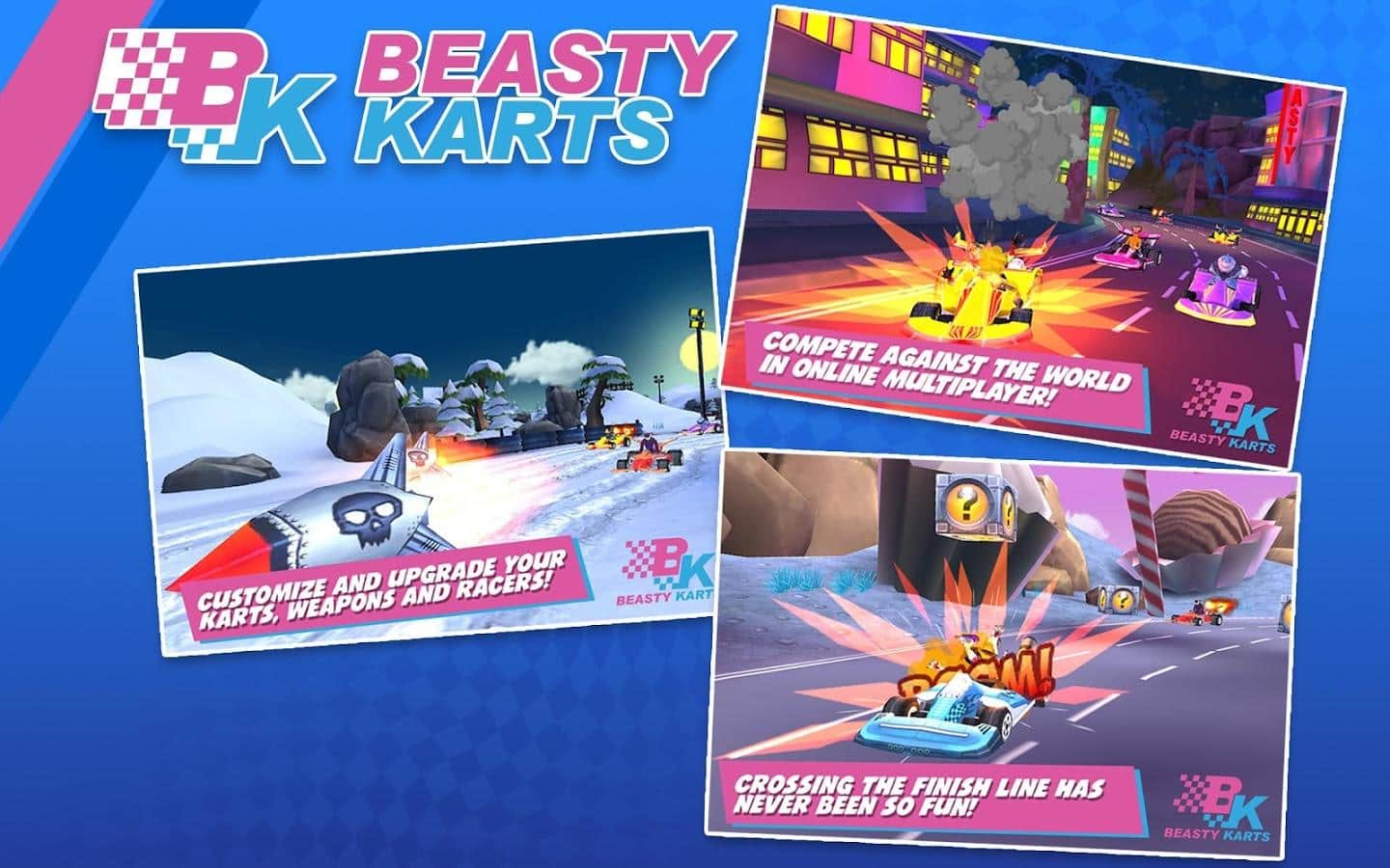 Beasty Karts – весёлые, аркадные гонки в которых вам необходимо гонять на своей тачке и попутно уничтожать всех своих оппонентов на протяжении двенадцати сложных, но в тоже время интересных трасс. В игре представлен достаточный ассортимент картов с различным дизайном. По мере прохождения игры можно улучшать оружие, тем самым уменьшая шансы на выживание ваших врагов. В однопользовательском режиме вы можете оттачивать ваше мастерство и повышать навыки вождения.