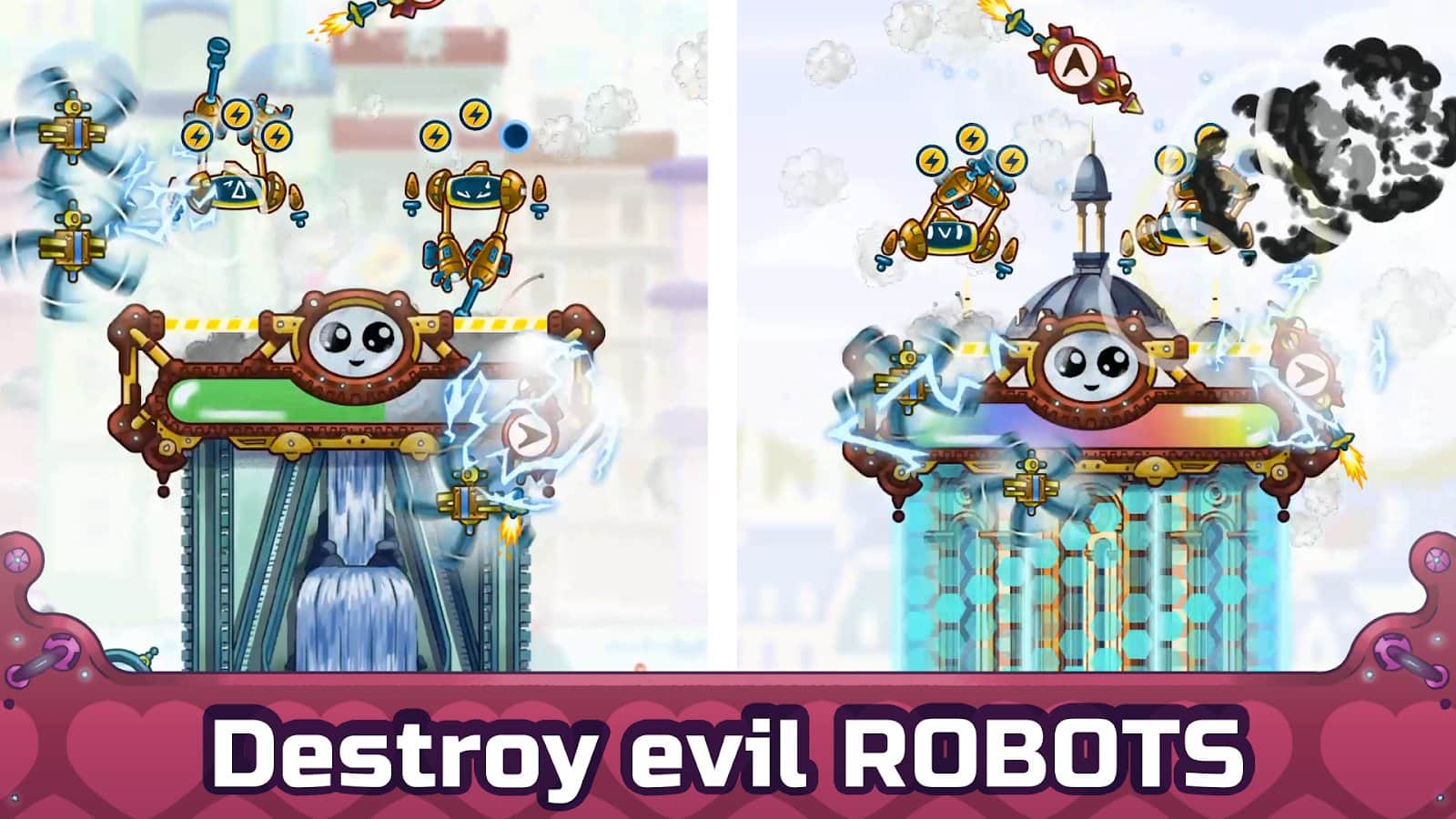 Геймплей игры также прост: тыкай на экран в нужное время и отбивайся от назойливых вредителей, хотящих сломать твои постройки.