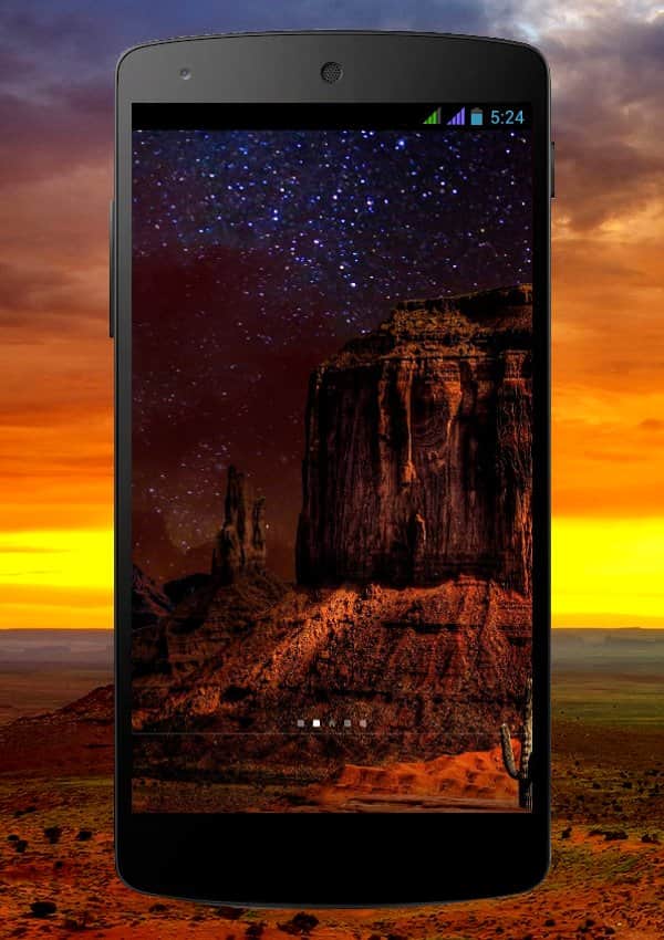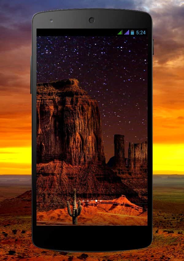 Beautiful Desert Night – отличные живые обои на андроид, которые перенесут вас в в долину Монументов. Благодаря этим обоям вы почувствуете себя настоящим ковбоем, который в одиночку путешествует по бескрайней долине, встречая на своем пути огромные скалы причудливого вида которые были созданы самой природой. Скалы омываемые дождями и обдуваемые ветрами простояли здесь не одну сотню лет и могут поразить взгляд неподготовленного туриста. Установите это приложение в свой телефон и наблюдайте за завораживающими видами и звездным небом.
