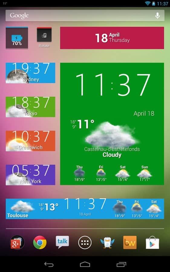 Beautiful Widgets на андроид - это потрясающие виджеты погоды, часов и других необходимых данных от студии LevelUp Studio. С помощью данных виджетов, а также большого виджета погоды и часов с календарем вы можете преобразить ваш рабочий стол. Присутствует огромное кол-во настроек и возможность смены скинов.