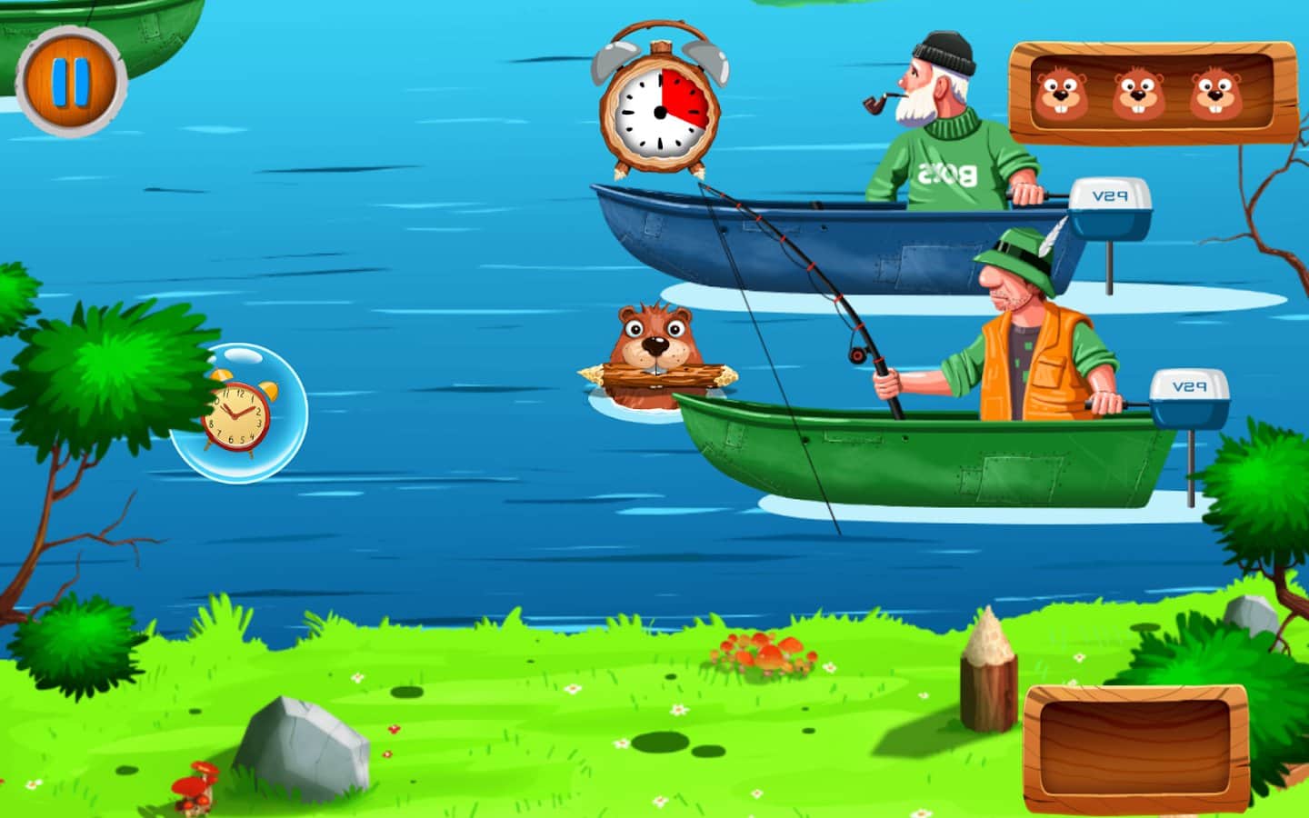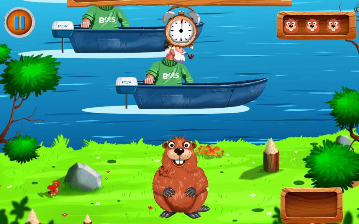 Beaver builder – веселая игра на андроид, в которой вы будете помогать бобру построить свой небольшой дом. Наш бобер решил построить себе дом, но вот незадача все бревна для строительства находятся на другом берегу и теперь ему предстоит плавать с берега на берег, преодолевая по пути рыбаков на лодках, крокодилов, лосей, медведей и летающих пеликанов. Помогите бобру собрать все бревна на другом берегу и не попасть в западню или не стать обедом для хищников. Для преодоления всех преград используйте различные ускорители и магию, которая поможет вам пройти все уровни за короткое время.