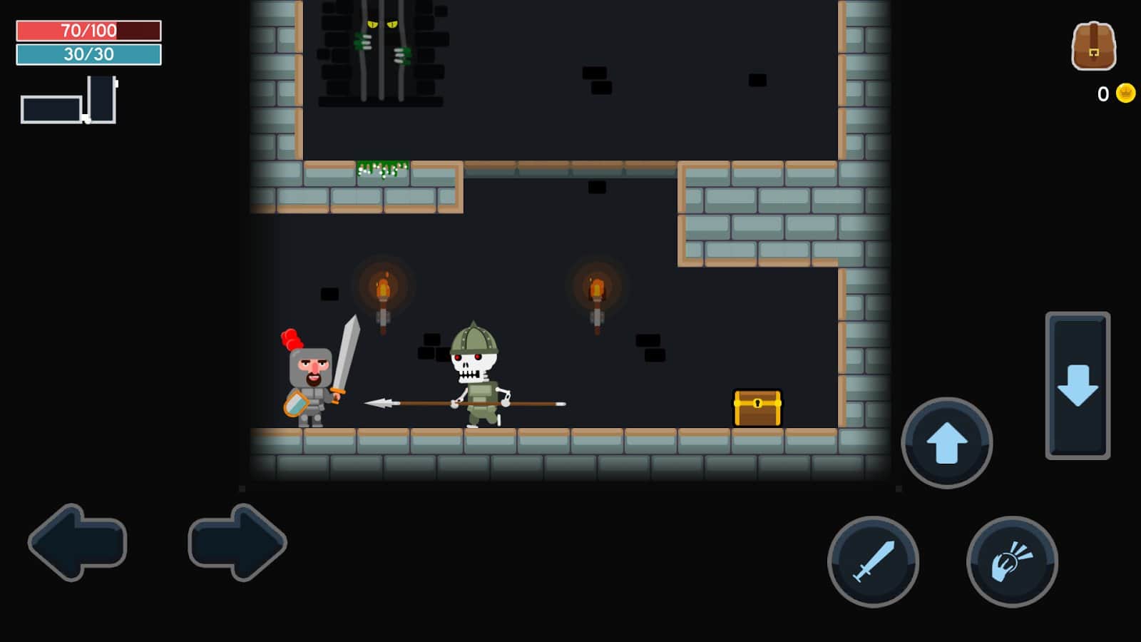 Become a Legend: Dungeon Quest – управляйте отважным рыцарем и очистите от монстров и чудовищ подземелья замка. Наш благородный рыцарь спустился в мрачные подземелья для того чтобы сразиться с нечистью, помогите ему в этом. Перемещайтесь по многочисленным локациям и сражайтесь с монстрами и скелетами, применяя уникальные особенности своего героя. Избегайте смертельных ловушек и побеждайте сильных боссов. Соберите свою неповторимую коллекцию достижений и применяйте в битве бонусы. Защищайтесь от атак нечисти с помощью щита и прокладывайте себе дорогу вглубь подземелья.