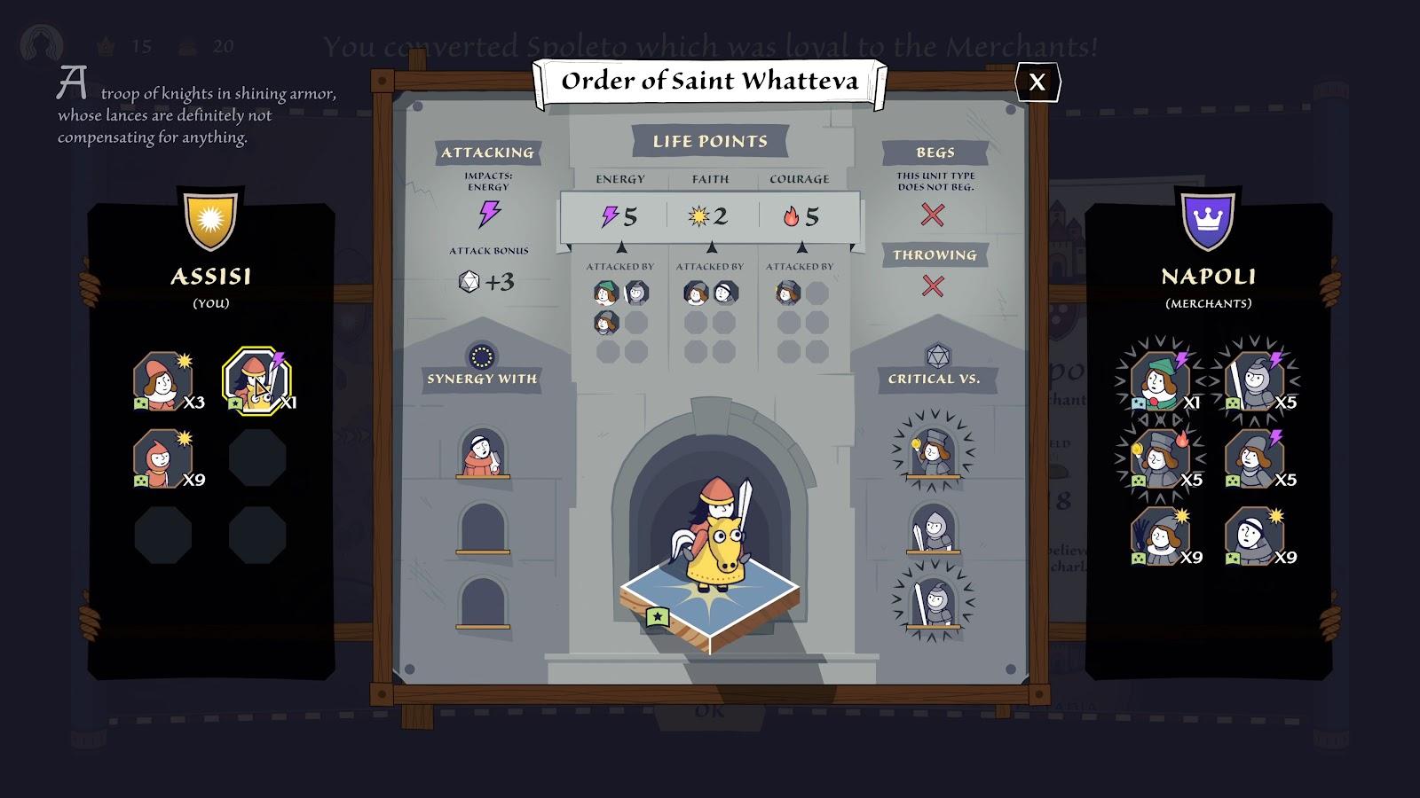 Becoming Saint - Погрузитесь в атмосферу средневековой Италии и создайте собственное религиозное движение в стратегическом roguelike. Выберите доктрину, собирайте последователей и отправляйтесь покорять города, распространяя свою веру силой убеждения или оружия. Участвуйте в динамичных сражениях в реальном времени, комбинируйте отряды с уникальными способностями и используйте рельеф в свою пользу. Принимайте судьбоносные решения, влияющие на развитие вашей идеологии и путь к святости. Каждое прохождение — новый вызов, где только сильнейшие смогут войти в историю.