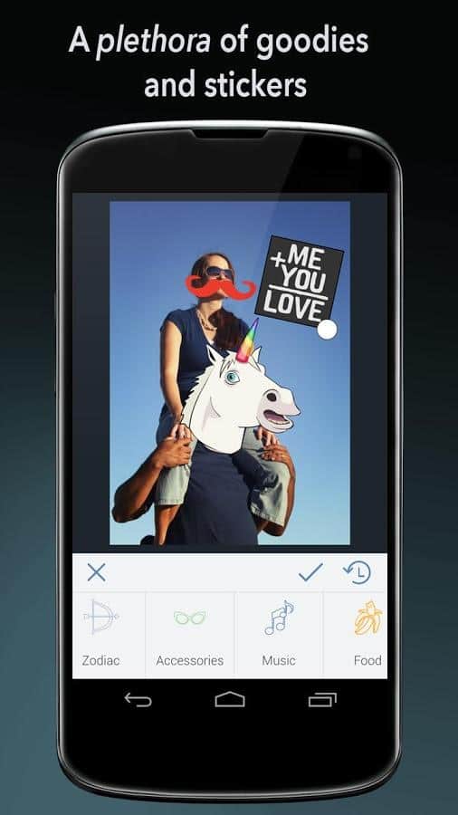 BeFunky Photo Editor Pro - С помощью этого приложение вы можете сделать с вашими фотками все что угодно, начиная от обычного добавления световых эффектов, и заканчивая головой единорога. Красивые фоторамки, куча лиц супер героев, множество наклеек. А ещё вы можете в любой момент, поделится вашей фотографией со своими друзьями. С этим приложением вы получаете полную свободу действий на просторах редактирования ваших фотографий. Экспериментируйте играючи.