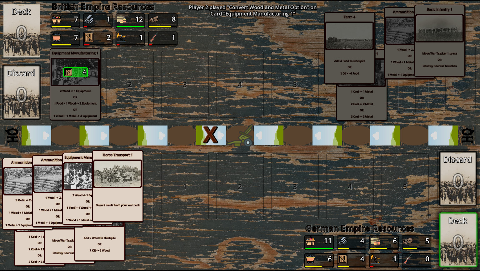 Behind the Trenches — это цифровая карточная стратегия, вдохновлённая Первой мировой войной и построенная вокруг управления ресурсами, логистики и пошаговых боёв. В игре 86 карт четырёх типов: ресурсы, логистика, битвы и переработка. Начальная колода включает базовую пехоту и производственные карты.