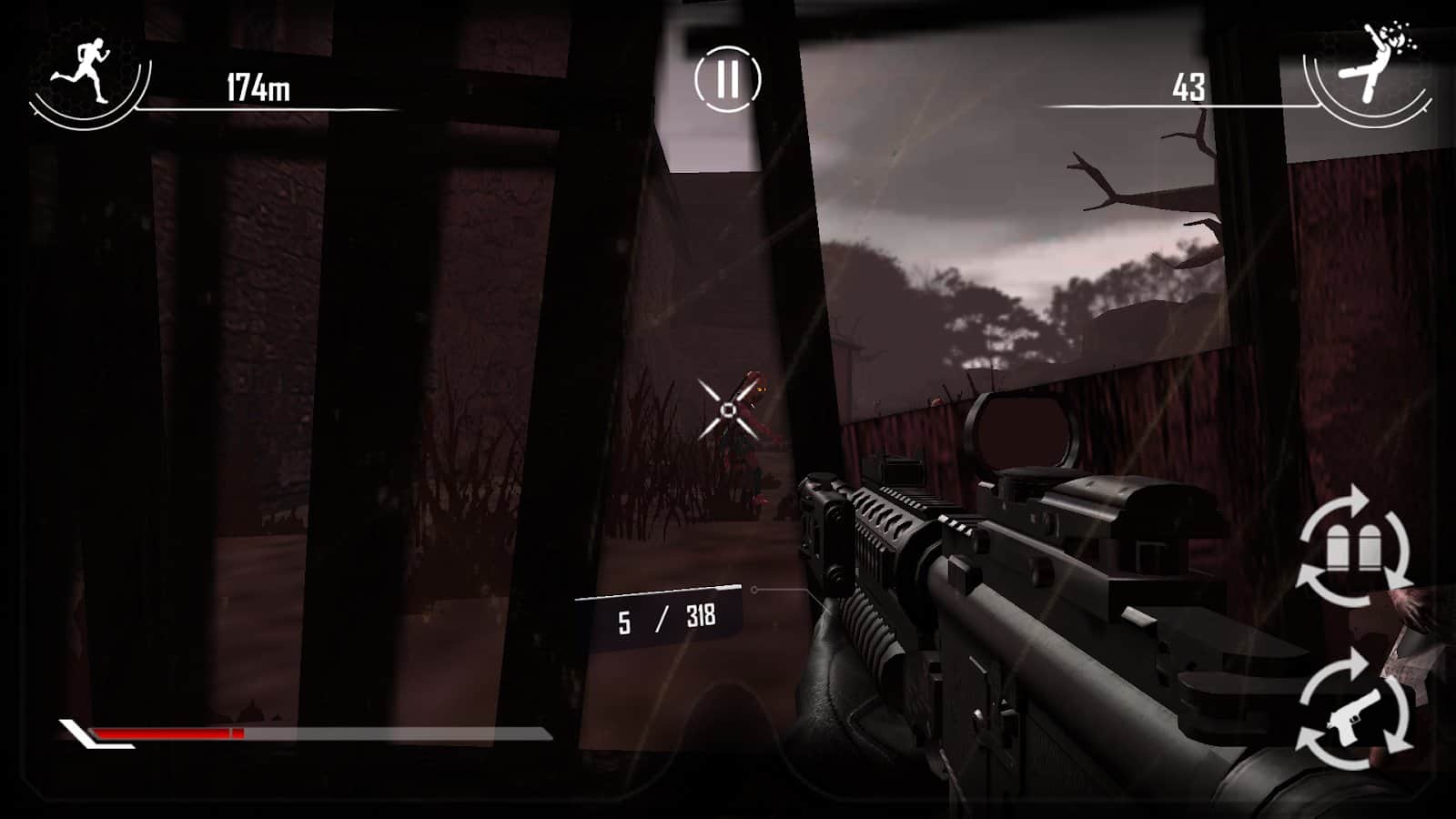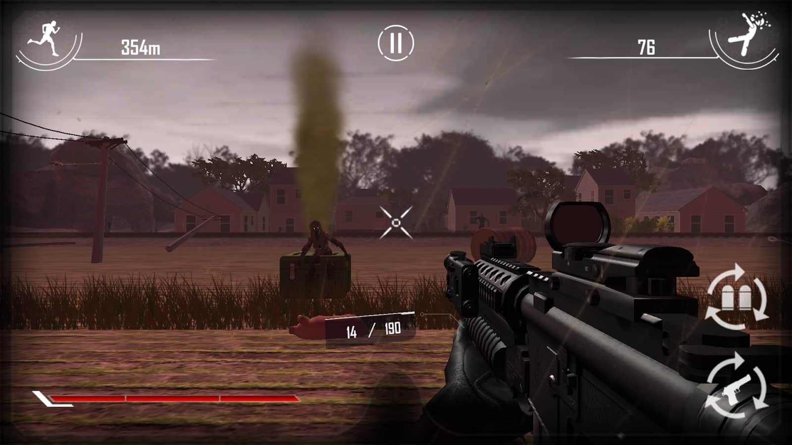 1) Стрельба тут не такая же чёткая как в Into the Dead, будет много промахов, ведь тут надо ещё попасть в прицел. Во время бега...2)Бежит персонаж, как будто в *аднице у него шишка застряла, камера трясётся(наверно спотыкается). Зачем увеличили для зомби яркость глаз, это совсем непонятно, но может быть, чтобы их видеть издалека - "бабушка, а для чего тебе большие глазки?" Как будто горящие лампочки у них в глазищах торчат - смешно смотрится и по детски.