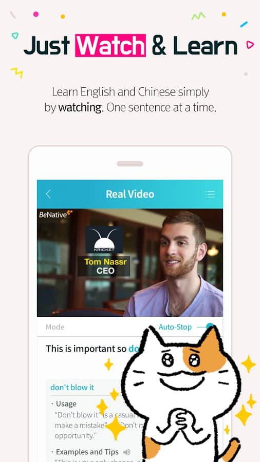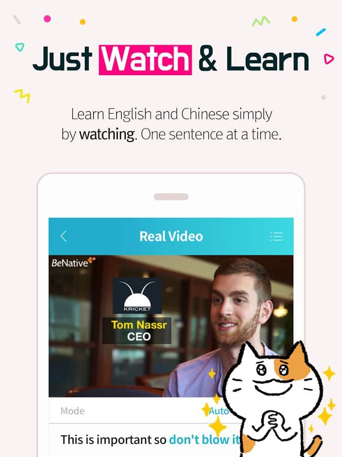 BeNative: Watch Pro Speakers - Великолепное приложение что объединило под своим началом уже не малое количество людей. С его помощью вы сможете изучать любой язык, при этом просто просматривая определенные видеозаписи. Суть состоит в том, что вы можете сами выбрать что будете смотреть и на каком языке, далее просто смотрите видео а ниже можете прочитать как правильно читается текст и его перевод.