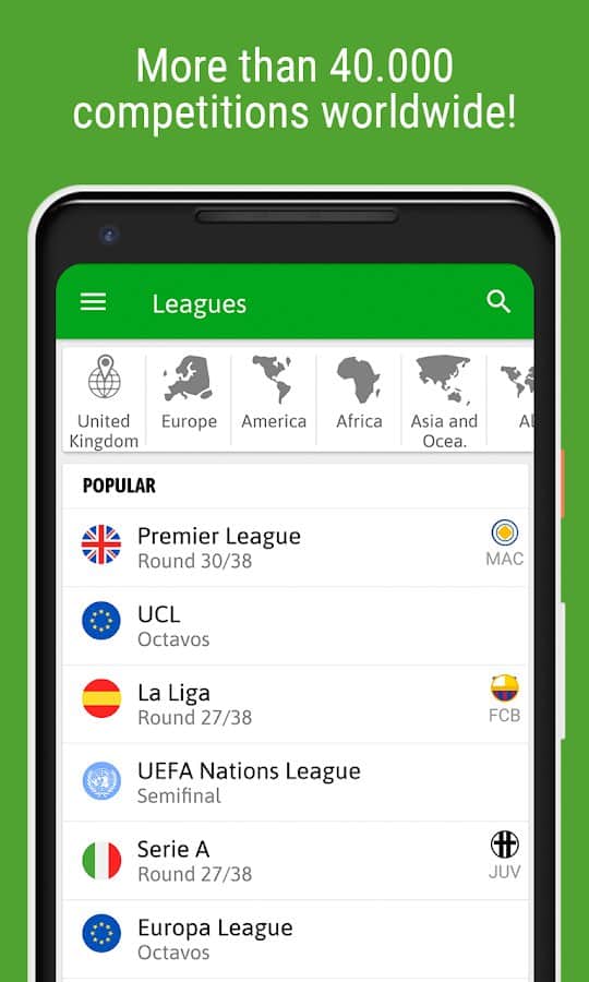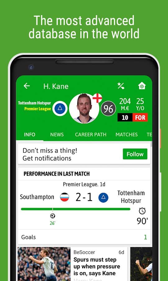 BeSoccer - Soccer Live Score разработано специально для футбольных фанатов. Вы сможете одним из первых посмотреть результаты матча и турнирную таблицу различных европейский и не только лиг.