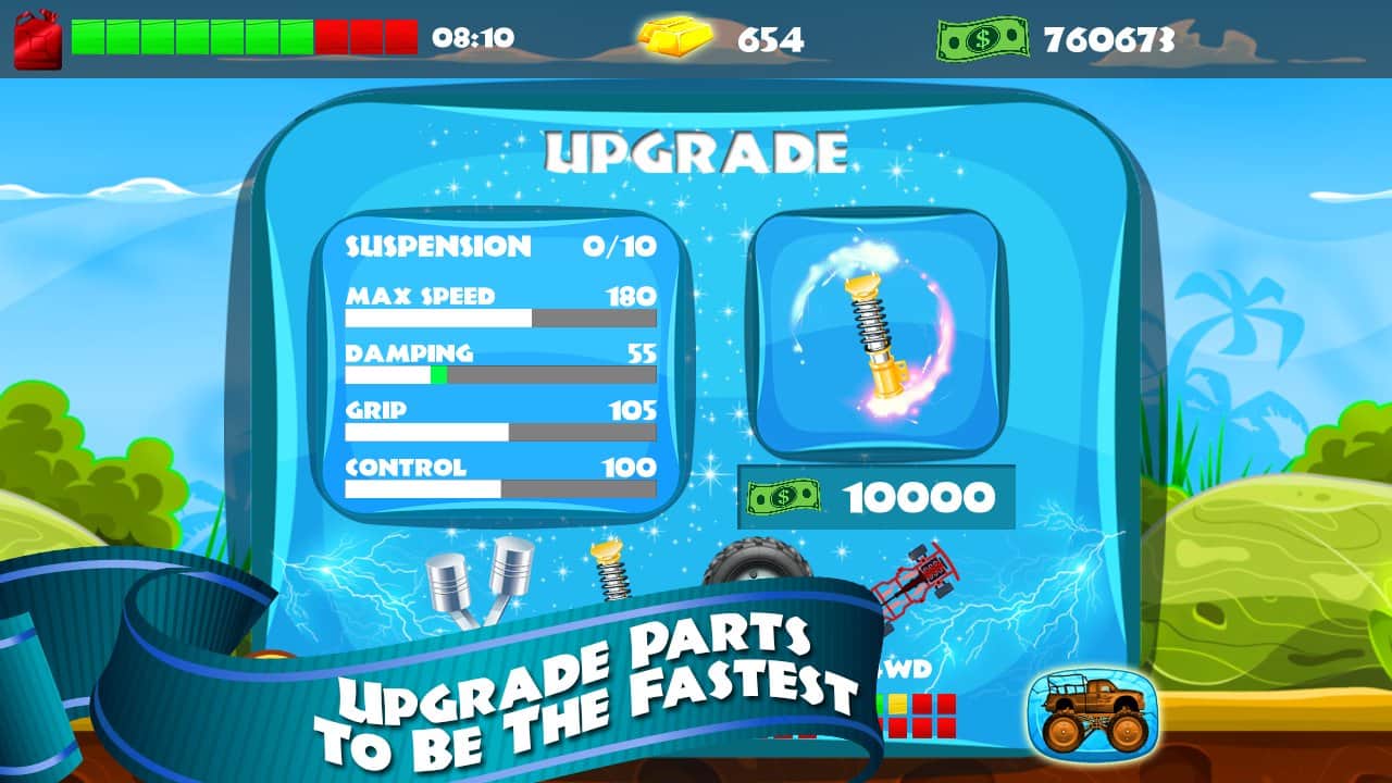 Best Monster Truck Climb Up - увлекательные и необычные гонки в которых вам предстоит не только творить трюки но ещё и вовремя проходить уровни. Смысл игры довольно простой нужно доехать до финиша и при этом не перевернутся, а в зависимости от того насколько быстро вы доедете до финиша вы получите награду. За награду вам заплатят деньги и вы сможете улучшить свой автомобиль что бы проходить очередной уровень. Игра довольно простая и интересная а так же довольно красиво нарисована.