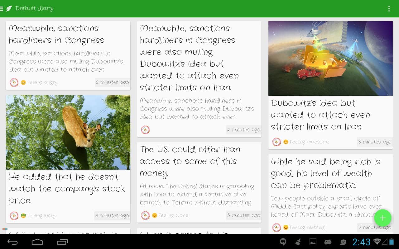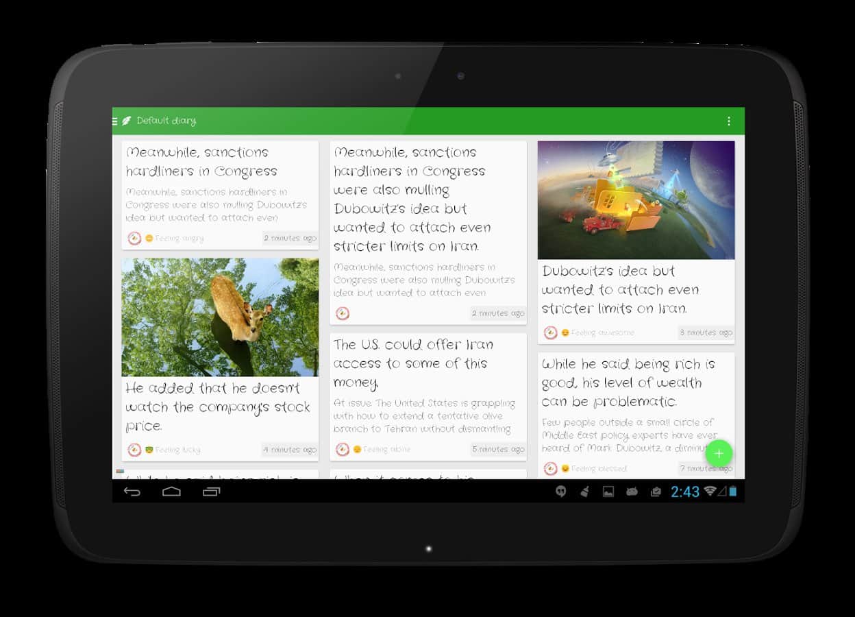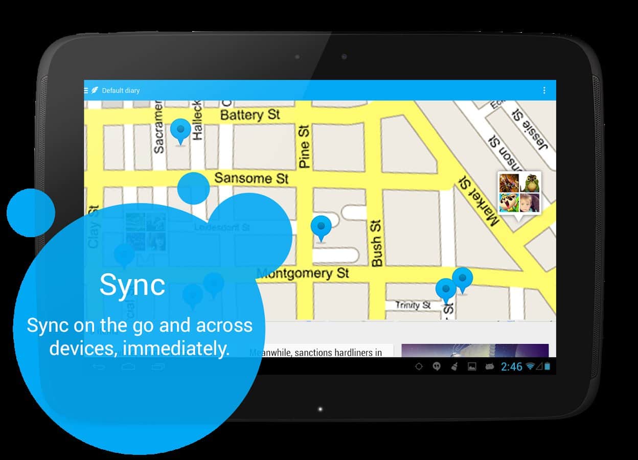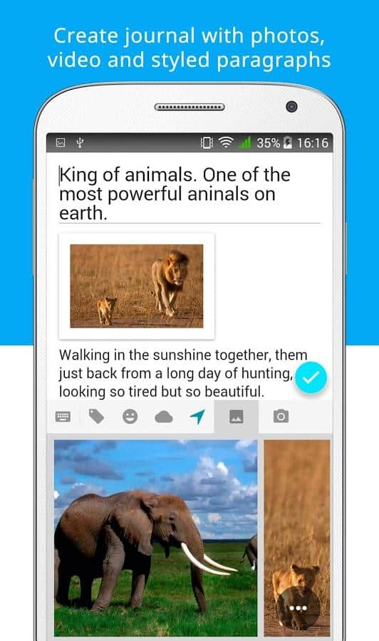 Полезная и красивая в оформлении программа-журнал. Большой редактор текста, возможность привязки события к месту(имеется карта).