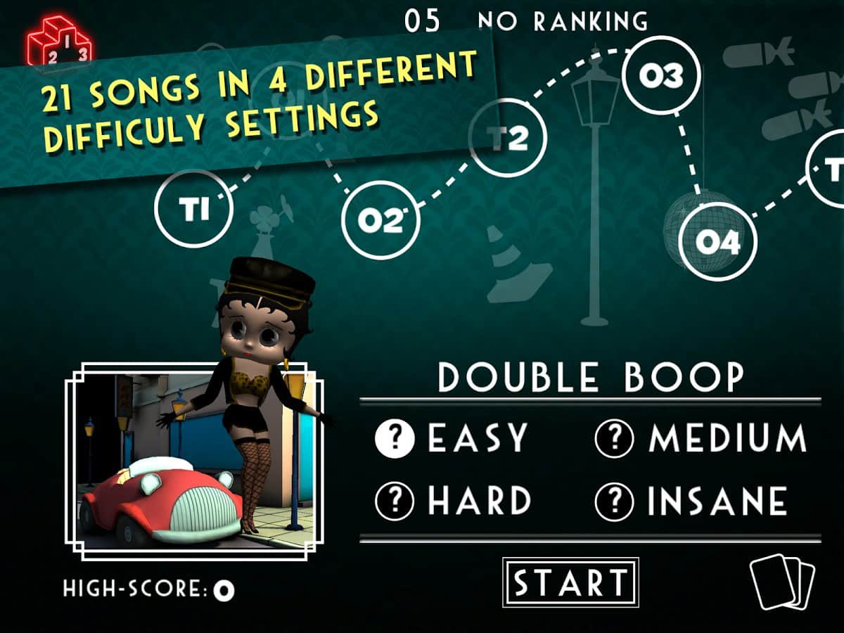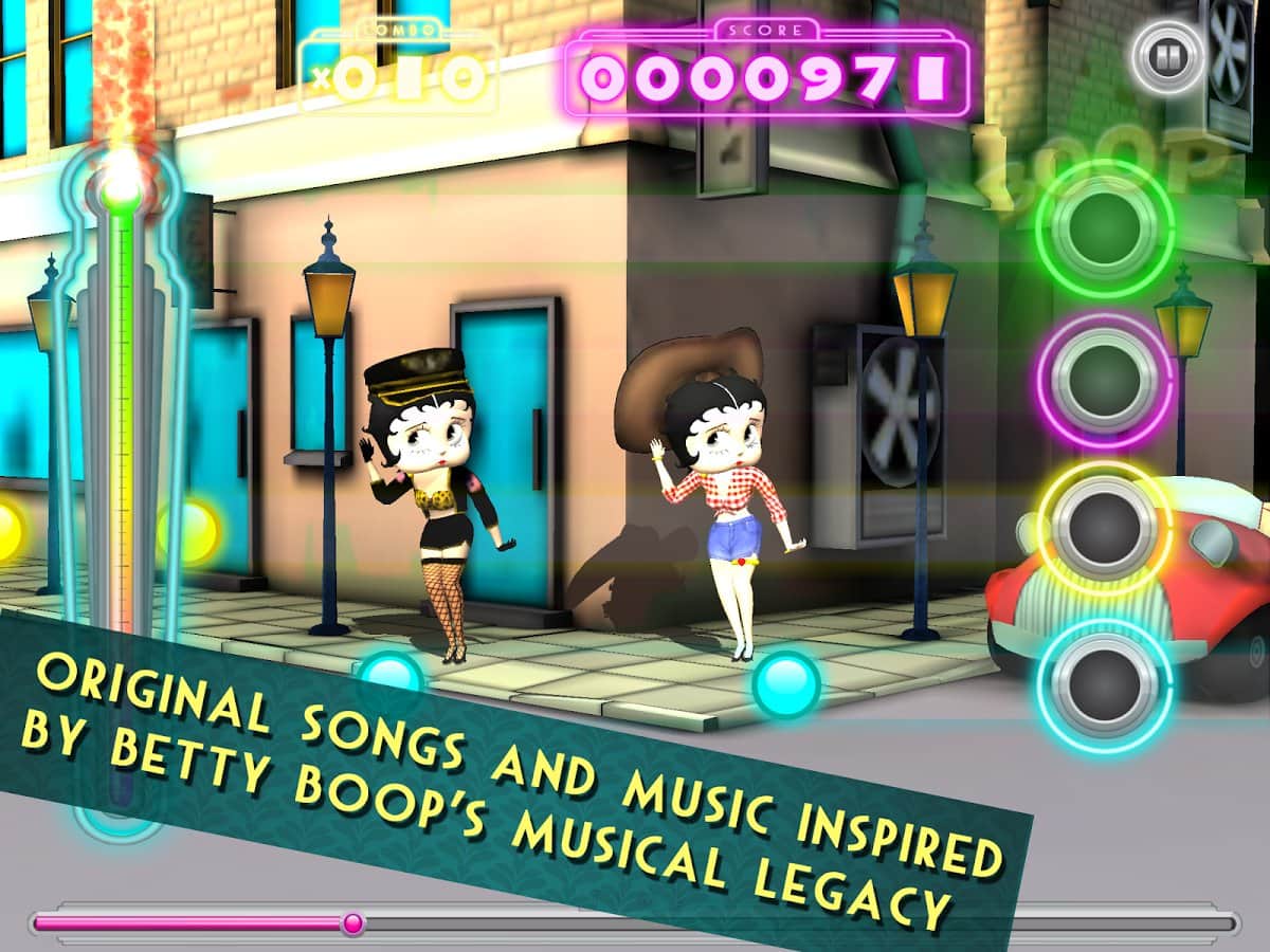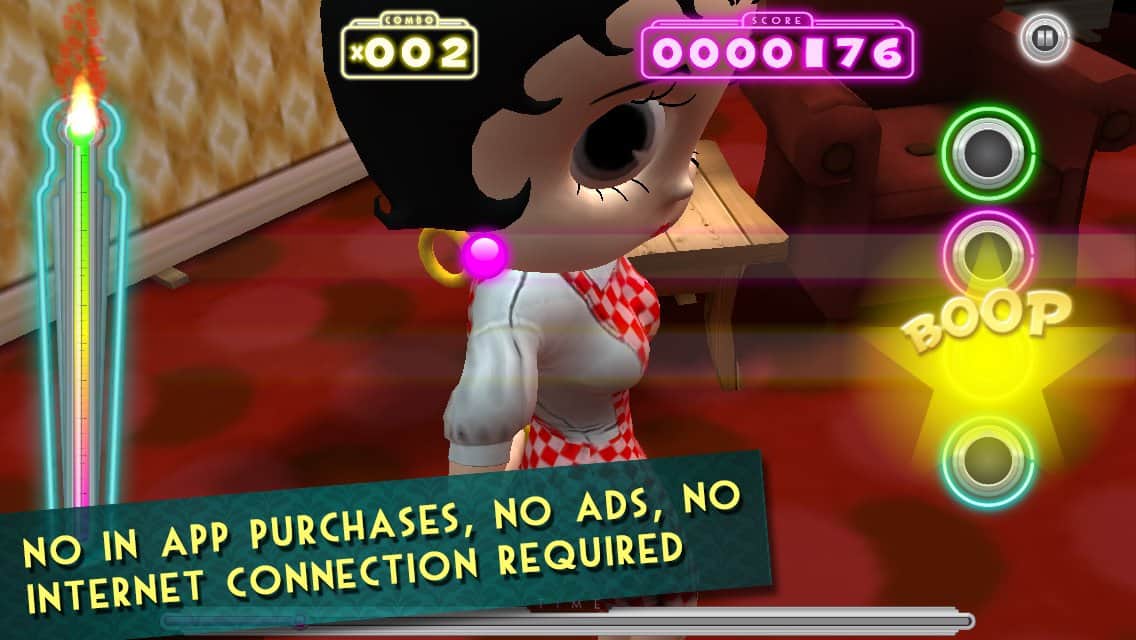 Бетти Буп Bop / Betty Boop Bop - Великолепная музыкальная игра на андроид про мультяшную красавицу – Бетти Буп. Вам предстоит управлять танцем Бетти, правильно кликая по экрану. Но это не будет простой игрой в один клик. Вам нужно проявить всю вашу ловкость, ведь движения на эк ране не всегда просты. Кроме обычного кликанья, в игре есть и миссии, которые вы будите выполнять.