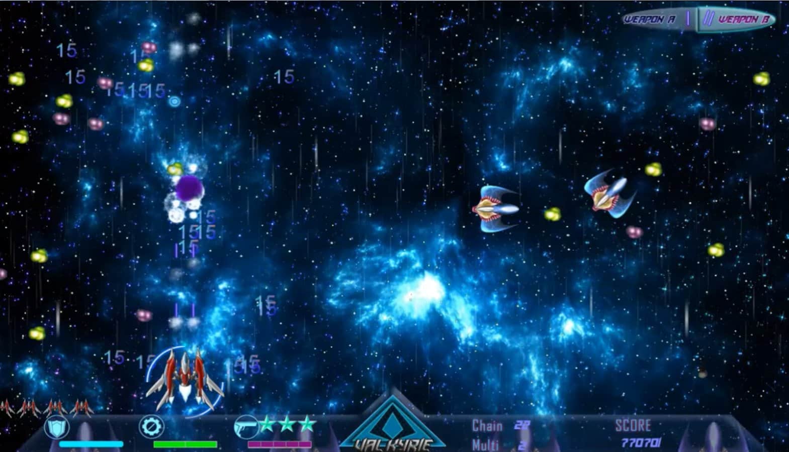 На момент появления игровых автоматов, а так же консолей первого поколения на ряду с такими играми как Lode Runner, Pac-Man и других классических аркад, появилась и космическая стрелялка, выходившая на разных платформах под разными названиями, однако игровая механика была везде одна. Вы управляя космическим боевым кораблем, перемещались вправо и влево при этом расстреливали целые армады врагов. В последствии игра приобрела статус культовой и по сей день регулярно выходят всевозможные аналоги. Beyond Black Space: Valkyrie - современная интерпретация той самой стрелялки, по уже сложившейся традиции игровая механика осталась прежней, а вот графическая составляющая заметно улучшилась. К тому же игра получила различные режимы и ряд современных возможностей.