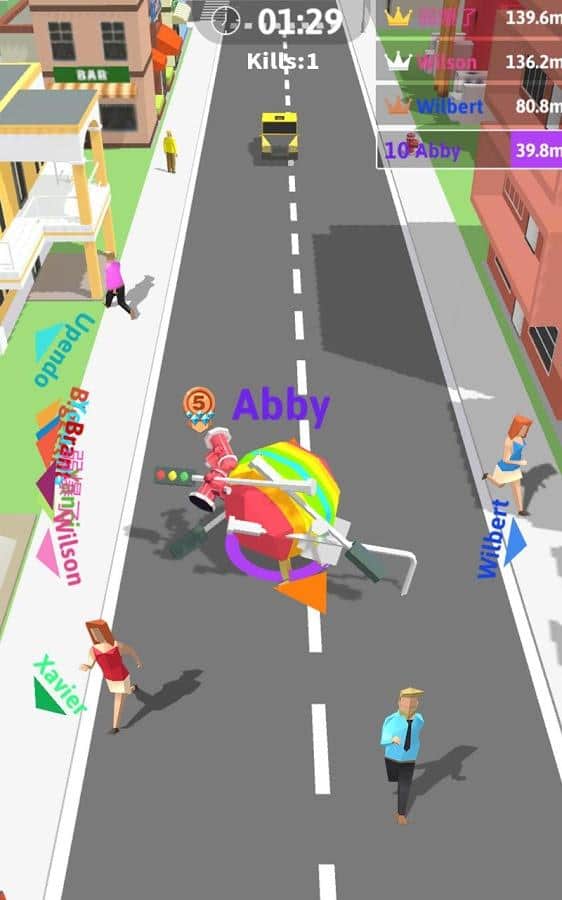 Big Big Baller – увлекательная аркада на андроид, где вы будете управлять мячом. В этой игре вы возьмете под свой контроль уникальный мяч, который при соприкосновении с объектами притягивает их к себе и тем самым увеличиваться в размерах. Перемещайтесь и исследуйте огромный город и соберите как можно больше различных объектов таких как: машины, грузовики, деревья, дома и даже небоскребы. Увеличьте размер своего мяча до предела и уничтожьте всех своих конкурентов. Продержитесь как можно дольше в игре и избавьтесь от всех других игроков.