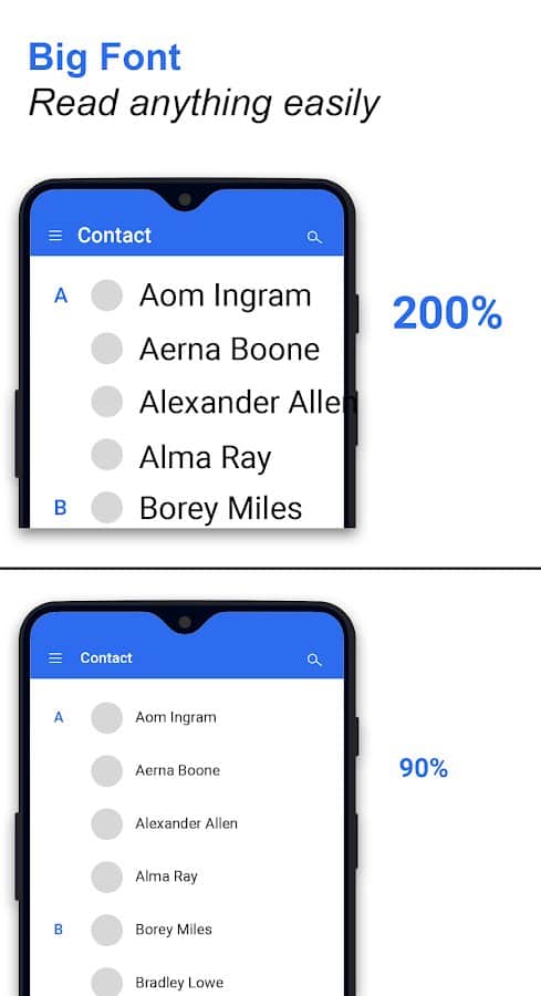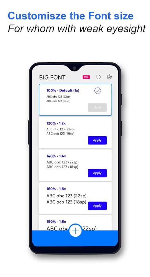 Big Font - Big Text Size - Иногда вам может быть не удобно при просмотре какой-либо информации в собственном телефоне, значит это происходит из-за маленького размера шрифтов. В этом приложении у вас есть возможность легко поставить другой размер текста, а также настроить его шрифт для большинства приложений и функций. Постарайтесь не использовать слишком большие размеры, иначе самостоятельно убедитесь в том, что такое решение лучше не применять на практике. Наслаждайтесь новыми шрифтами и сами не заметите разницу, но она точно будет ощутима!