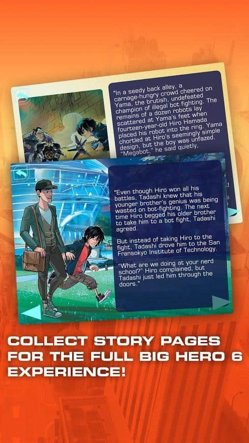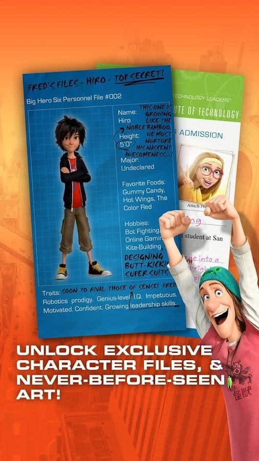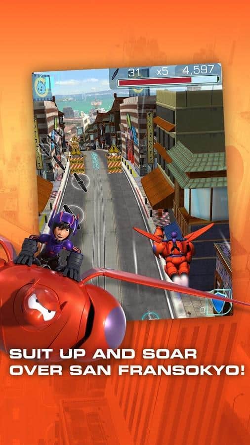 Big Hero 6: Baymax Blast – увлекательный раннер от Disney созданный по сюжету известного мультфильма "Город героев". Отправляйтесь в увлекательное путешествие вместе со своим героем по здравоохранению Баймаксом. Экипируйте его в защитный костюм и исследуйте все улицы Сан-Франциска ища следы похищенных микроботов. Преодолевайте все препятствия на своем пути, соберете достаточное количество баллов, чтобы разблокировать новых персонажей знакомых вам из мультфильма и просматривайте интересные видео клипы. Обновляйте своих героев в лаборатории, наделяя их новыми интересными способностями, и соберите интересные рассказы о каждом отдельном персонаже.