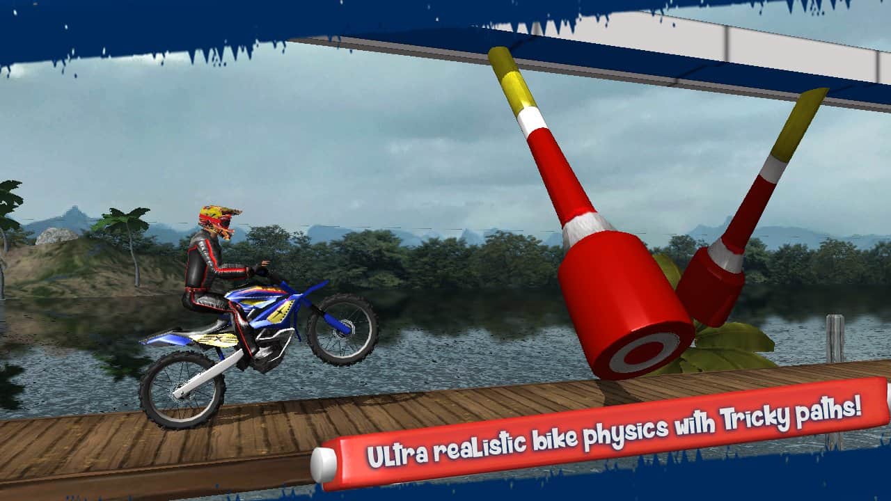 Bike Master 3D – мототриал на андроид, где вы должны провести свой мотоцикл по опасным трассам. Возьмите под свой контроль спортивный мотоцикл и гоняйте на нем по различным трассам этой игры, выполняя многочисленные головокружительные трюки и перевороты. Примите свое участие в экстремальных соревнованиях по мотокроссу и приходите к финишу первым среди своих конкурентов. Передвигайтесь по опасным трассам и избегайте столкновения с движущимися препятствиями и качающимися маятниками. Преодолевайте водные преграды и перепрыгивайте с одной платформы на другую, применяя для этого всю ловкость своих пальцев, нажимая в нужный момент на экран своего девайса. Получайте достижения и награды и открывайте новые мотоциклы, имеющие различные характеристики.