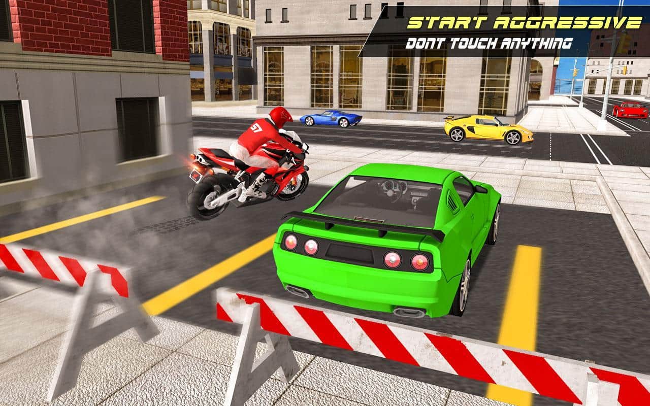 Bike Parking Adventure 3D – симулятор на андроид, где вы будете парковать мотоцикл в городе. Гоняйте на своем мотоцикле по различным трассам и маршрутам и покажите на деле все свои навыки отличной езды. Паркуйте свой мотоцикл в указанном месте и проходите одну за другой миссии игры. С каждым новым уровнем сложность заданий будет усложнятся и вам придется изрядно постараться чтобы выполнить их. Лавируйте среди машин и ведите свой мотоцикл в указанное место. Преодолевайте все преграды у себя на пути и получайте ценные награды в виде других мотоциклов, которые будут иметь уникальный дизайн и характеристики.