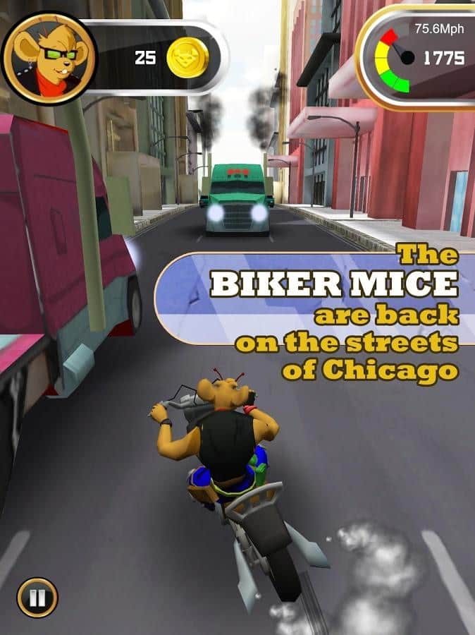 Biker Mice from Mars – раннер на андроид, созданный по сюжету знаменитого сериала, где вы вновь встретитесь со всеми оригинальными персонажами. В этой игре вы возьмете под свой контроль одного из главных персонажей и проведете его по улицам Чикаго, собирая по пути монетки и сражаясь с головорезами и бандитами. В этой игре вас ждут четыре захватывающих эпизода, в каждом из которых вы будете выполнять различные миссии и задания. Гоняйте на своем мотоцикле по узким улицам Чикаго и обходите все преграды у себя на пути, подпрыгивая с трамплинов и не допуская столкновений с машинами. Соберите достаточное количество монет и откройте всех персонажей игры.