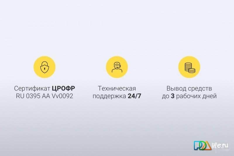 Низкий порог входа - минимальный депозит 500 рублей, минимальный размер сделки от 100 рублей.