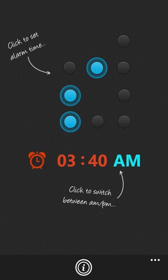 Binary Clock - приложение для windows phone, часы с хорошим графическим представлением времени. Имеет функцию двойного сигнала, это очень удобно когда необходимо поставить несколько будильников одновременно. А также воспользуйтесь несколькими цветовыми формами, для смены цвета часов.