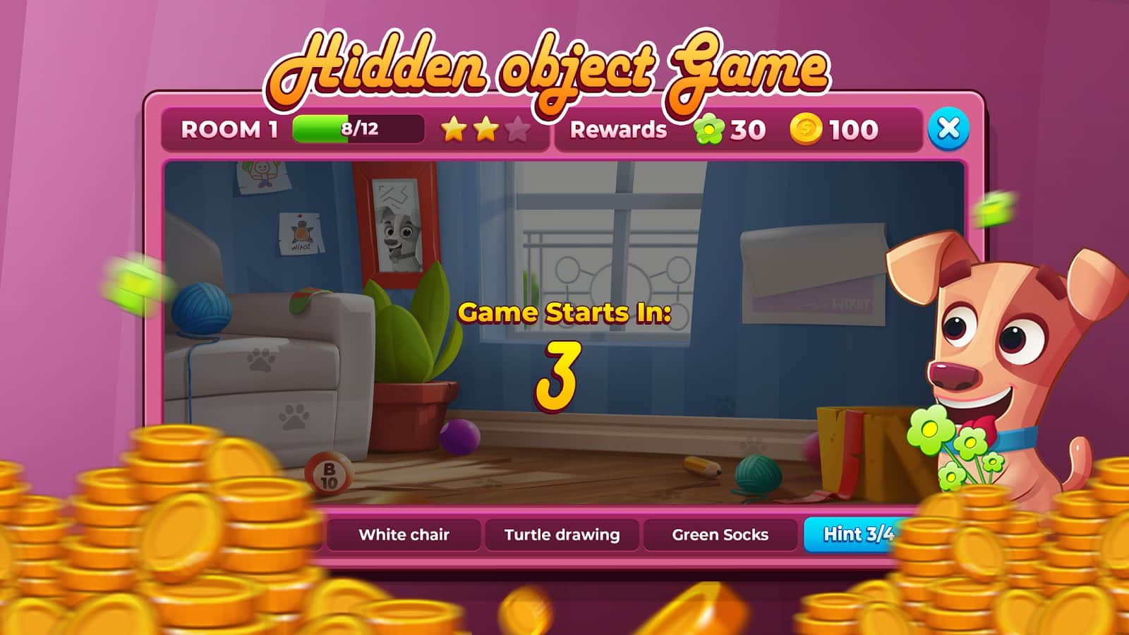Bingo My Home – увлекательная игра на андроид, где вы будете играть в бинго. В этой игре вашей главной задачей будет положится на свою сообразительность и следить за выпадающими номерами и заполнять свои карточки. Заполняйте карточки полностью и получайте отличные награды. Играйте в бинго и путешествуйте по различным комнатам дома. Заполучите до восьми карточек и заполняйте их одновременно чтобы повысить свои шансы на победу. Выполняйте разнообразные задания и получайте отличные призы и награды. Разблокируйте новые комнаты дома и позвольте своему псу пробраться в них и отыскать спрятанные предметы.