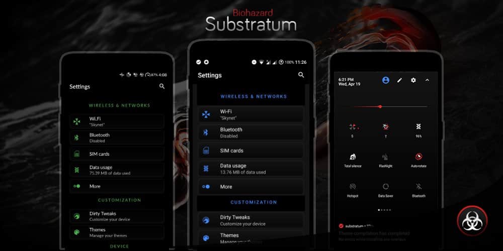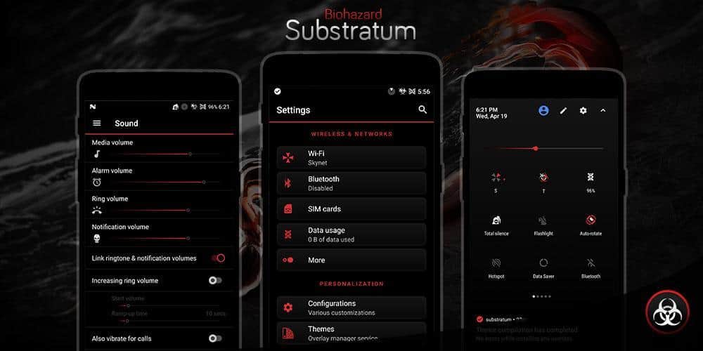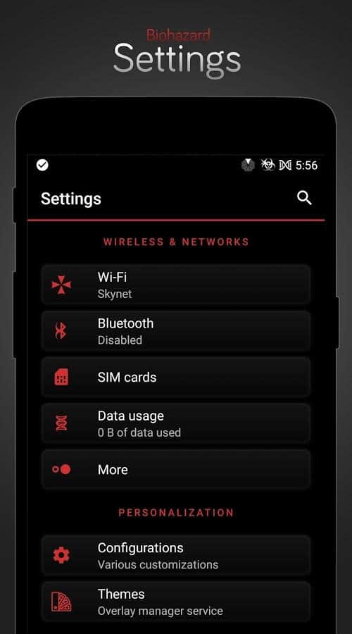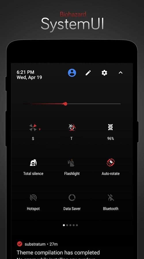 iohazard Substratum Theme - Если вам надоели все эти стандартные темы, и хочется чего то новенького то это приложение создано для вас. Оно соединило в себе два элегантных цвета а именно черный и красный. Их сочетание смотрится очень красиво и ярко, хотя в тоже время не слишком сильно бросается в глаза. С этой темой изменится не только цвет но и множество деталей в том числе иконки и рабочий стол.