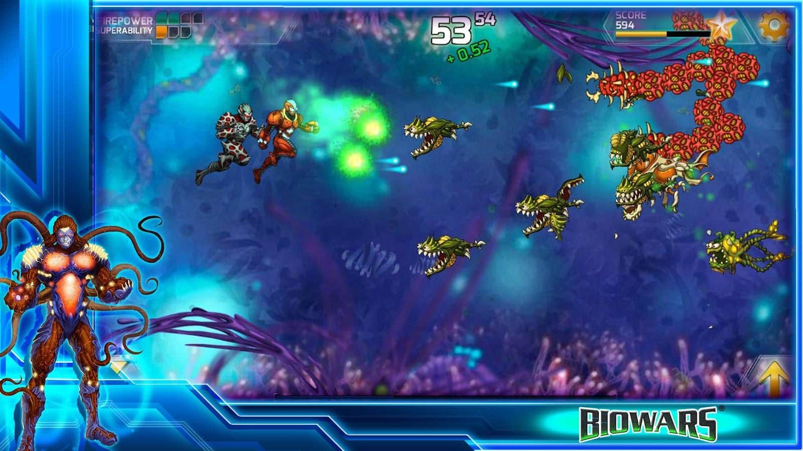 BIOWARS: Invisible War – невидимая война бушует внутри практически каждого человека. Человеческое тело, столь сложный организм, что в нём запросто могут помещаться и другие формы жизни и не всегда они настроены дружелюбно. Но и это не проблема, доблестные воины BioWarriors помогут вам в истреблении чужеродных организмов. Игра представляет собой динамичный и насыщенный врагами скролл-шутер. В игре около четверти сотни уровней множество врагов и сильные боссы. Два героя возможно смогут спасти чью-то жизнь, помогите им в этом. Соревнуйтесь с другими игроками за получения максимального количества баллов.