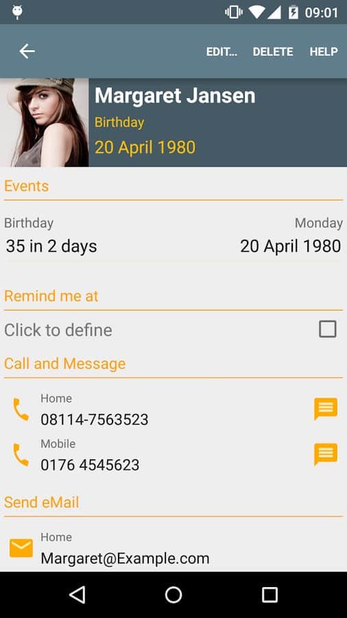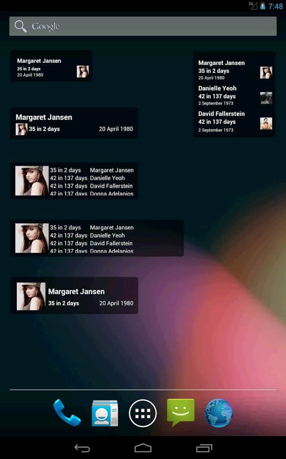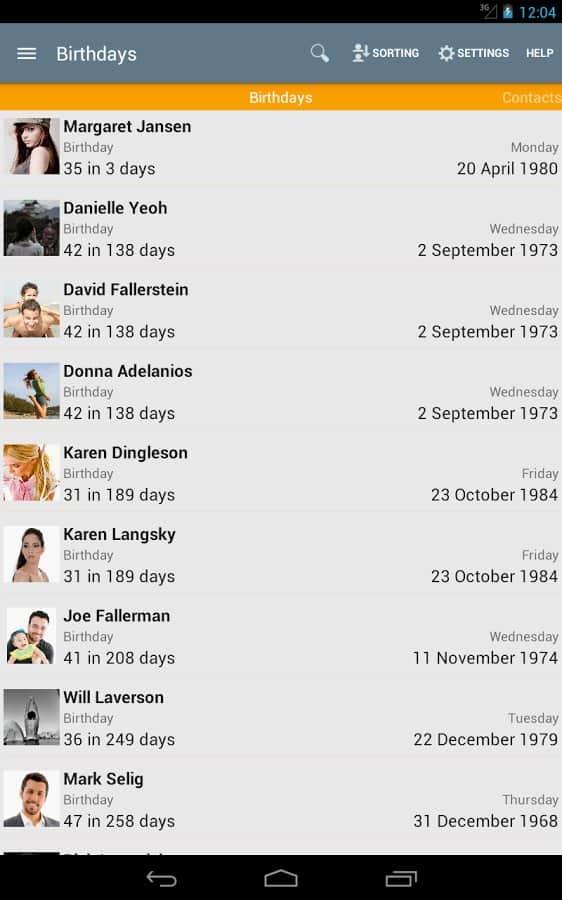 Birthdays – отличная программа для андроид от разработчика Muzurisana UG (haftungsbeschränkt), которая не позволит вам забыть или пропустить дни рождения или важные даты ваших друзей, родных и близких. Birthdays содержит хороший функционал и красивый вид - в общем, то что надо!