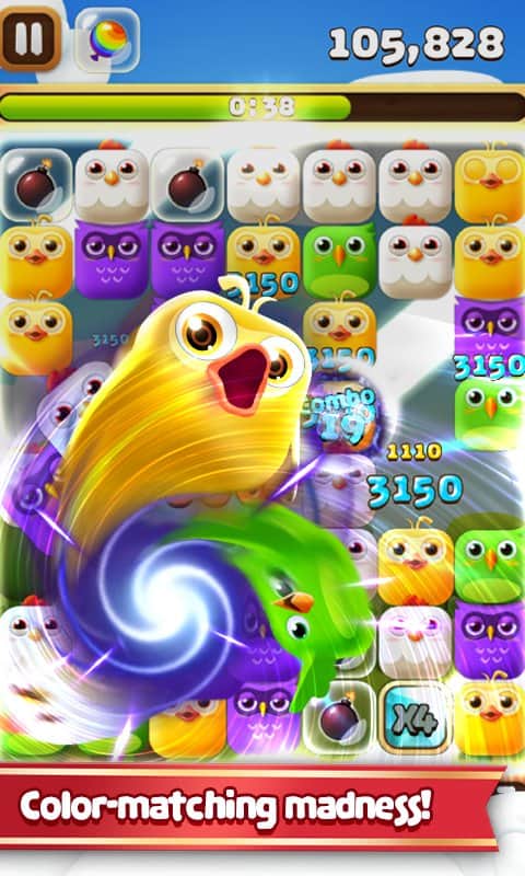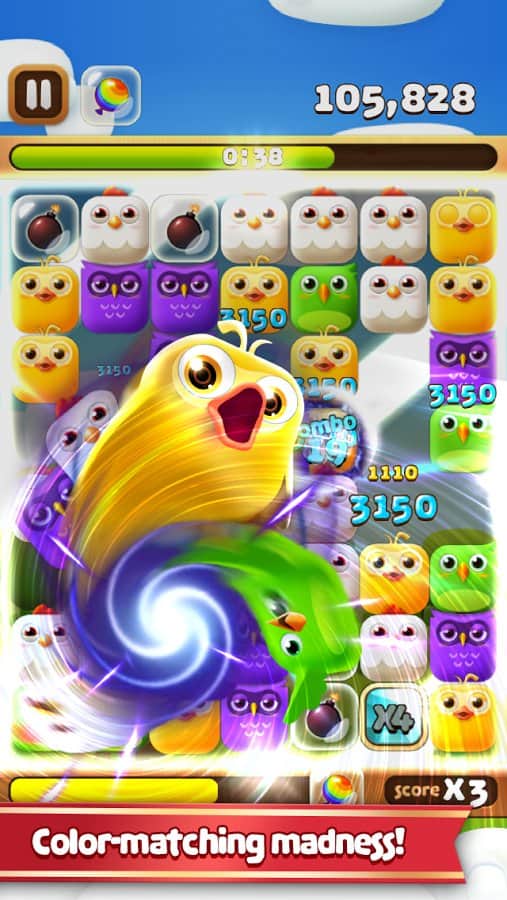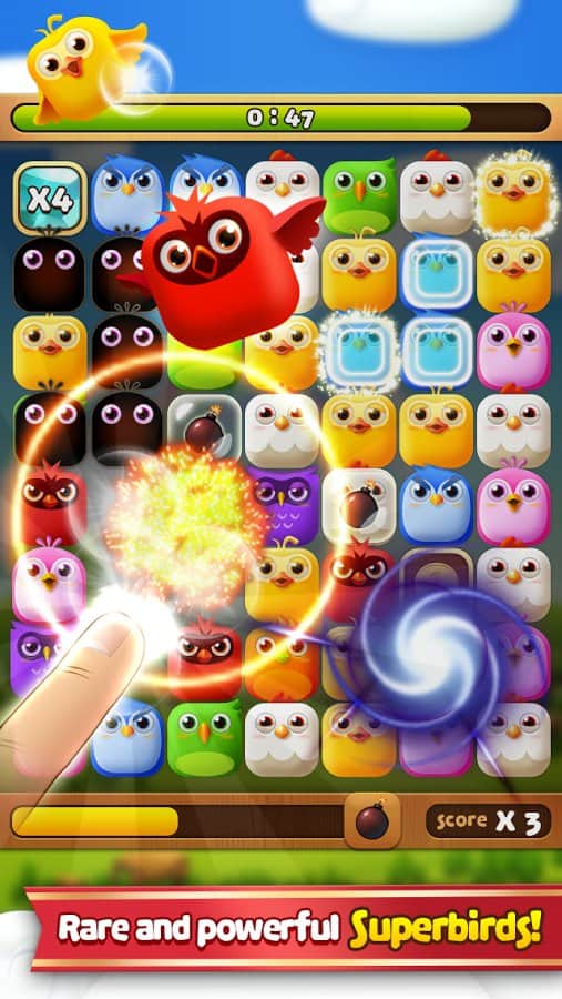 Birzzle Fever - увлекательная игра из жанра "три в ряд" со взрывным геймплеем. Игра, где вам необходимо искать совпадения в птичках и убирать их с поля одним движением руки. Ищите одинаковых птичек и проделывайте комбо удары, а также собирайте золотые ключики и открывайте дополнительные режимы игры. Играйте в эту игру, соревнуйтесь со своими друзьями, тренируйте ваших птичек и улучшайте их способности для получения больше бонусов и лучших результатов.