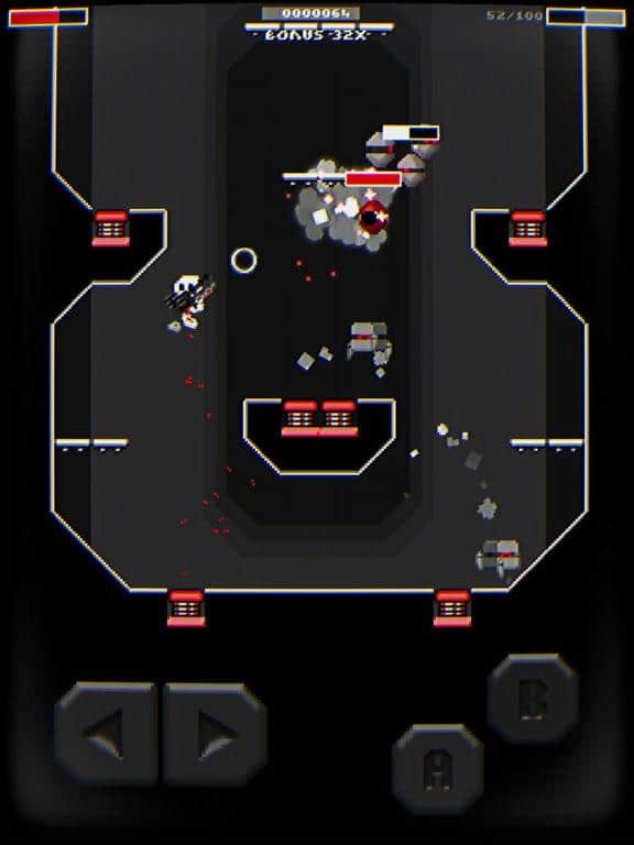 BIT QUAKE – бесконечный экшен для IOS, где вы будете уничтожать роботов. Управляйте главным героем в чьи обязанности входит уничтожение многочисленных роботов, которые атаковали вашу планету. Бегайте, прыгайте и ведите огонь по противникам при этом стараясь уничтожить как можно больше роботов что поможет вам увеличить ваш счет. Открывайте для себя новые виды оружия и продержитесь как можно дольше в этой игре. Подготовьтесь ко встрече с сильными боссами которых не так просто будет победить. Получайте бонусы и выбирайте апгрейд.
