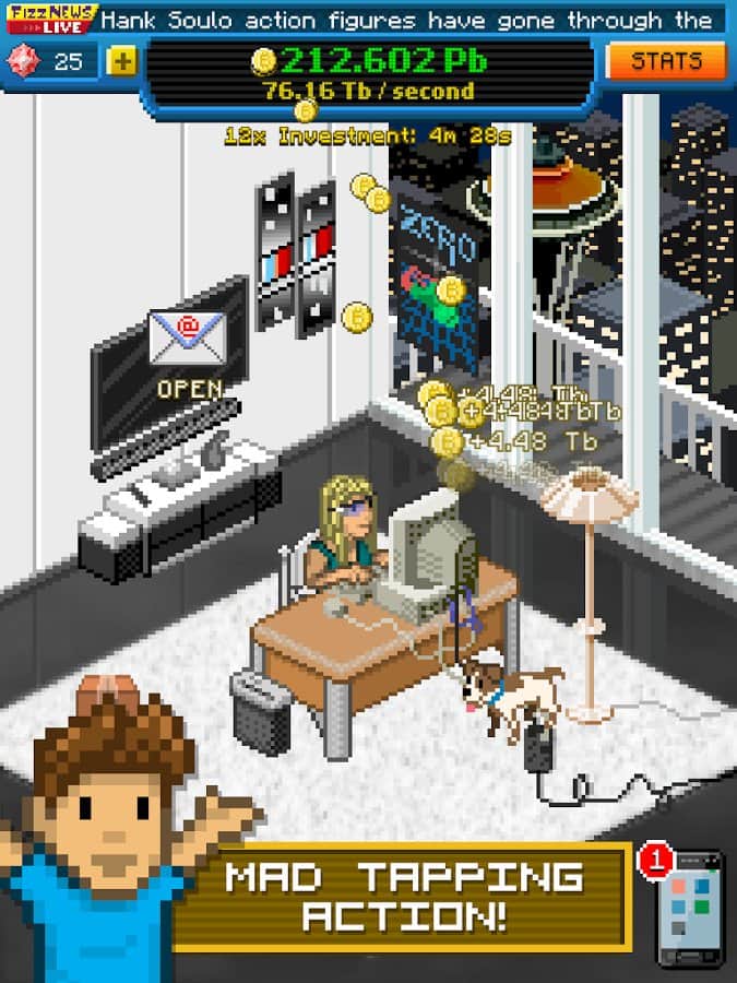Bitcoin Billionaire - К вашему вниманию представляем интересную игру в стиле «стратегия». Начните свой бизнес из ничего: снимите офис в захудалом месте, купите старый стол и самый простой компьютер. Зарабатывайте биткойны и постепенно увеличивайте своё богатство. Обновите мебель, купите несколько шикарных вещей, а потом дело дойдёт до приобретения развлекательных комплексов и бесценных произведений искусства. Вкладывайте свои деньги в инвестиции, которые помогут вам заработать тогда, когда вы находитесь далеко. Станьте миллиардером!