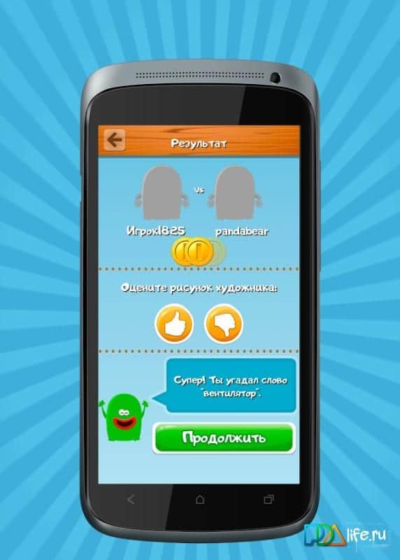 Битва Художников – увлекательная игра, смысл которой заключается в угадывании нарисованной картинки. Один игрок рисует, а второй старается угадать что будет нарисовано. На выбор даётся три слова различного уровня сложности. Если соперник смог отгадать нарисованный предмет, тогда монеты получают оба игрока, так что в ваших интересах чётко и понятно изобразить загаданное слово. За заработные монеты можно покупать бомбы, они используются для того чтобы упростить вам игру. С помощью их можно удалять лишние буквы – это действительно поможет вам быстрее отгадать слово. После привязки аккаунта к социальной сети ВКонтакте вы можете играть вместе со своими друзьями, что может быть занимательней и интереснее?