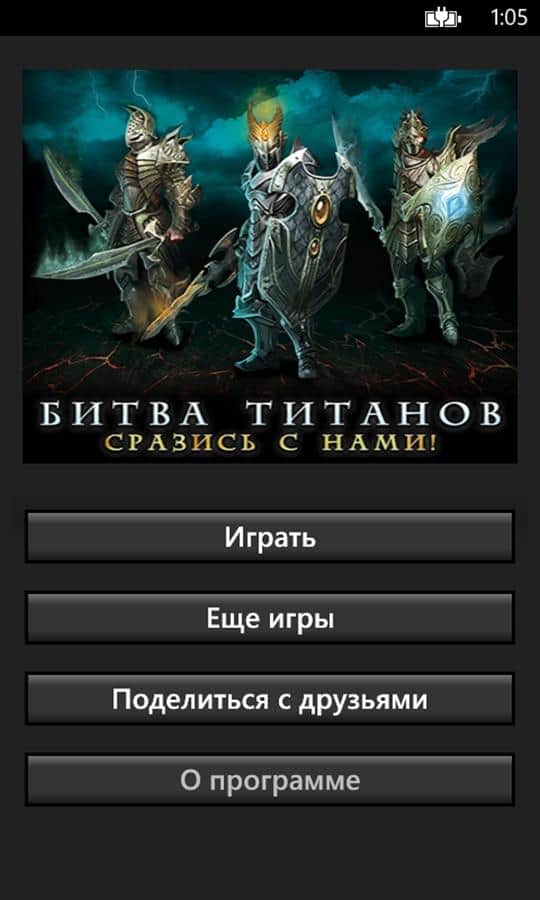 Битва титанов - он-лайн РПГ для пользователей Windows Phone - грандиозные сражения и жестокие битвы! Как и во всех РПГ, сначала выбирайте себе героя по вкусу, дайте ему имя, изучайте магию и отправляйтесь в наступление на врага. Прокачивайте героя, улучшайте его навыки и умения, вступайте в кланы, используйте артефакты, производите все необходимое в кузнице, выполняйте миссии и задания. Сделайте вашего героя настоящим воином и сильным мира сего!