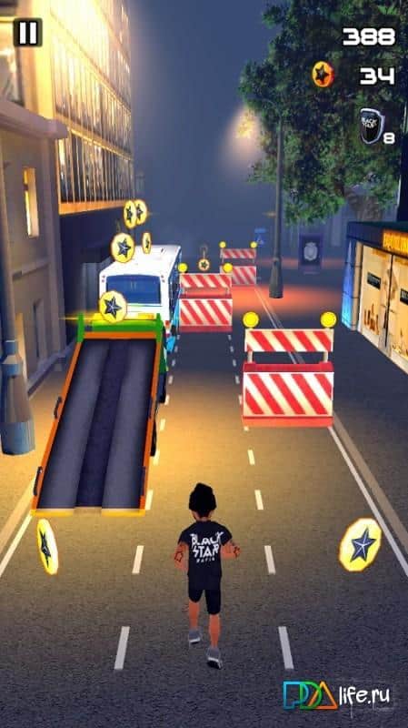 Black Star Runner – раннер на андроид, где вы возьмете под свой контроль одного из известных реперов. Бегайте по огромной Москве и обходите все препятствия на своем пути. Выбирайте себе героя из многочисленных представленных в игре персонажей таких как: ТИМАТИ, L'One, Егор Крид, Natan, Мот, Kristina Si, MC Doni и Philchansky и начинайте свое путешествие по ночным улицам. Бегайте, прыгайте и уклоняйтесь от препятствий подстерегающих вас на каждом шару. Передвигайте по улицам и спускайтесь в метро, опасайтесь фут и автобусов, а также бесшабашных гонщиков. Собирайте по пути монетки и приобретайте для своего репера новые костюмы и аксессуары. Применяйте различные бонусы и в два раза быстрее преодолевайте трассу. Играйте с друзьями и соревнуйтесь с ними за лучшие места в таблице лидеров.