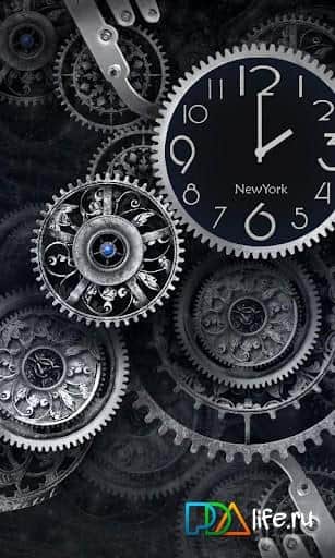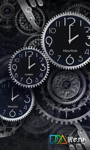 Black world time clock theme - необычные живые обои добавят на рабочий стол Вашего смартфона сразу 3 классических циферблата, на которых отображается мировое время. Выполнены очень здорово можно рассмотреть части механизма, болтики и разные шестеренки. Сделано в эдаком готическом стиле и непременно такие «чудо-куранты» придутся по душе любителям классики.