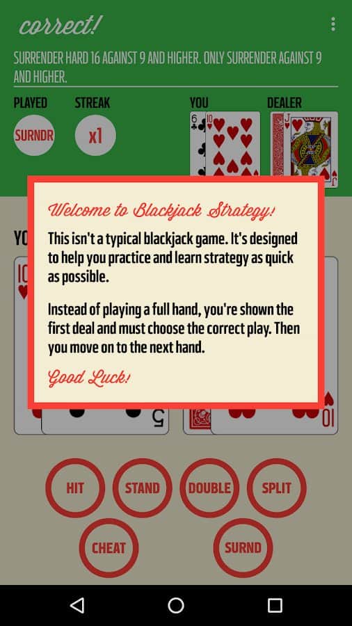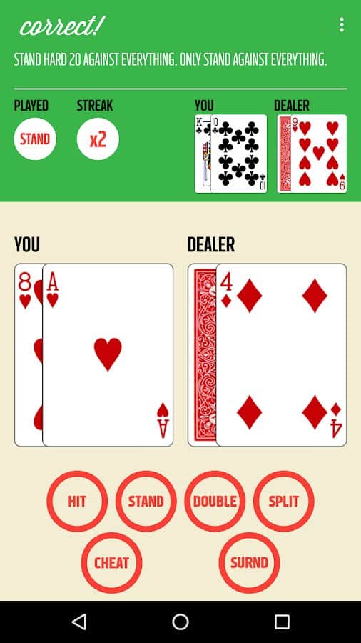 Blackjack Strategy Practice – увлекательная настольная игра на андроид, где вы будете учится играть в Блэкджек. В этой игре вашей главной задачей будет разработать свою идеальную стратегию игры в карточную игру. Играйте в эту игру со своими друзьями и добивайтесь отличных результатов.