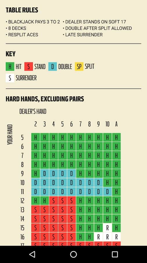 Быстрый доступ к стандартной стратегии блэкджек карты
