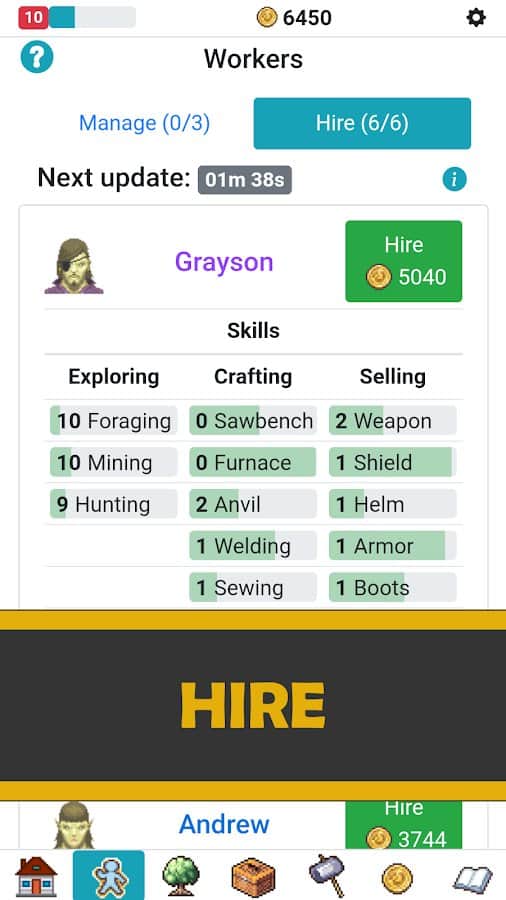 Управление собственным магазином - непростое дело. В Blacksmith Shop Manager вы сможете проигрывать основные моменты процесса управления и торговлей в магазине кузнечного ремесла. Исследование подземелий и других местностей, помещений создаст вам условия для добычи и продажи полезных предметов, а также развития собственного магазина и торговли. Посредством прохождения уровней вы будете повышать свой ранг и улучшать состояние товарооборот и прибыли. Реклама в приложении отсутствует, а около ста увлекательных квестов не дадут заскучать во время прохождения основных миссий.
