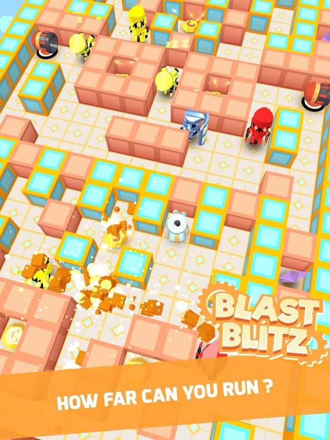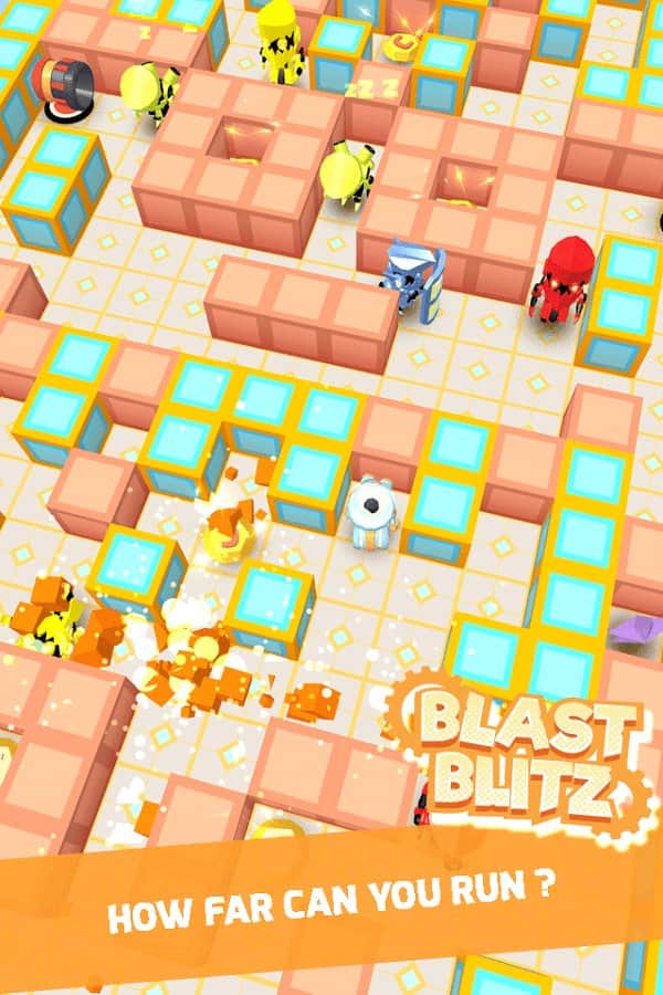 Blast Blitz - Эта игра совместила в себе множество различных жанров, это и головоломка где вам предстоит быстро и четко принимать решения, и раннер в котором нужно убегать от обваливающегося пола и аркада в которой нужно двигаться не только быстро, но и с умом. А в целом эта игра очень напоминает старого доброго бомбермена. Её суть довольно проста, есть лабиринт где множество ломающихся и не ломающихся стен, а так же других роботов что кидают бомбы, вам нужно пройти весь этот лабиринт и не умереть.