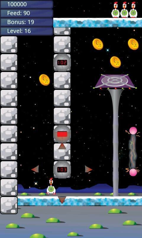 Blastro Chicken - аркадная игра для телефонов на платформе андроид. Играем за отважного петушка, который отправился в космос на поиски приключений, летаем по космическим уровням собираем монеты и бонусы. Не забываем про различные препятствия которые непременно будут вам мешать на протяжении этой увлекательной игры. Вас ждут интересные и опасные приключения на протяжении всех 12 уровней.