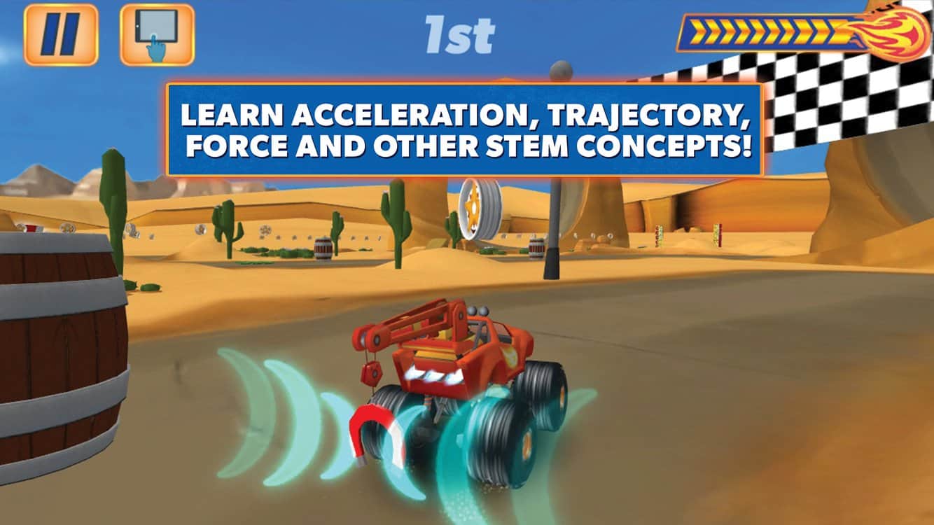 Blaze and the Monster Machines – будьте готовы к гонкам на чудовищно больших машинах, разорвите в клочья дорожное полотно и набирая максимальную скорость, мчитесь на встречу победе и кубку чемпиона. Каждый режим гонки призывает детей применять навыки различного мышления. Изучение некоторых физических свойств тесно переплетается с качественным геймплеем. Изучайте принципы ускорения, адгезии, силы, тяги и многое другое! В игре развитая система бонусов. пятнадцать уровней учитывая разные уровни сложности, то и всё 45 выходит, плюс ко всему Золотые, серебряные или бронзовые медали, завоеванные честной борьбой.