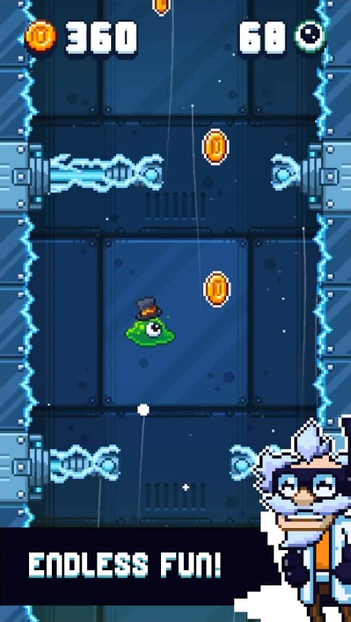 Blobout - Endless Platformer – управляйте передвижением капельки по опасной башне. Наш герой стал участником научных экспериментов злого ученого, и только вы способны ему помочь. Управляйте прыжками героя и поднимайтесь как можно выше по башне, при этом избегая опасных ловушек и острых шипов. Наш герой имеет уникальные возможности цепляться за стены отвесной башни и тем самым обходить препятствия. Совершайте прыжки в нужный момент касаясь экрана своего телефона при этом, не забывая собирать по пути полезные бонусы. Приобретайте различные шапки для героя и устанавливайте рекорды.