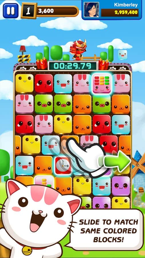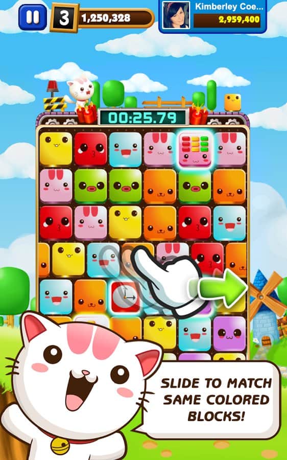 Block Slide Rush - Эта игра прекрасно совмещает в себе головоломку и игру на время. Составляй блоки вместе, используй супер- способности главного героя игры-котёнка, и проявляй чудеса ловкости и скорости, чтобы заработать максимальное количество очков! Не забывай менять костюмы своего любимца, чтобы подчеркнуть его индивидуальность и получить новые возможности. Составляй комбинацию из трёх блоков и получишь супер-блок, как только соединишь супер-блоки, активизируй их и получи дополнительные очки. Не забывай следить за временем, успей убежать! Пройди все уровни за выделенное время и докажи, что ты- самый быстрый кот в мире!