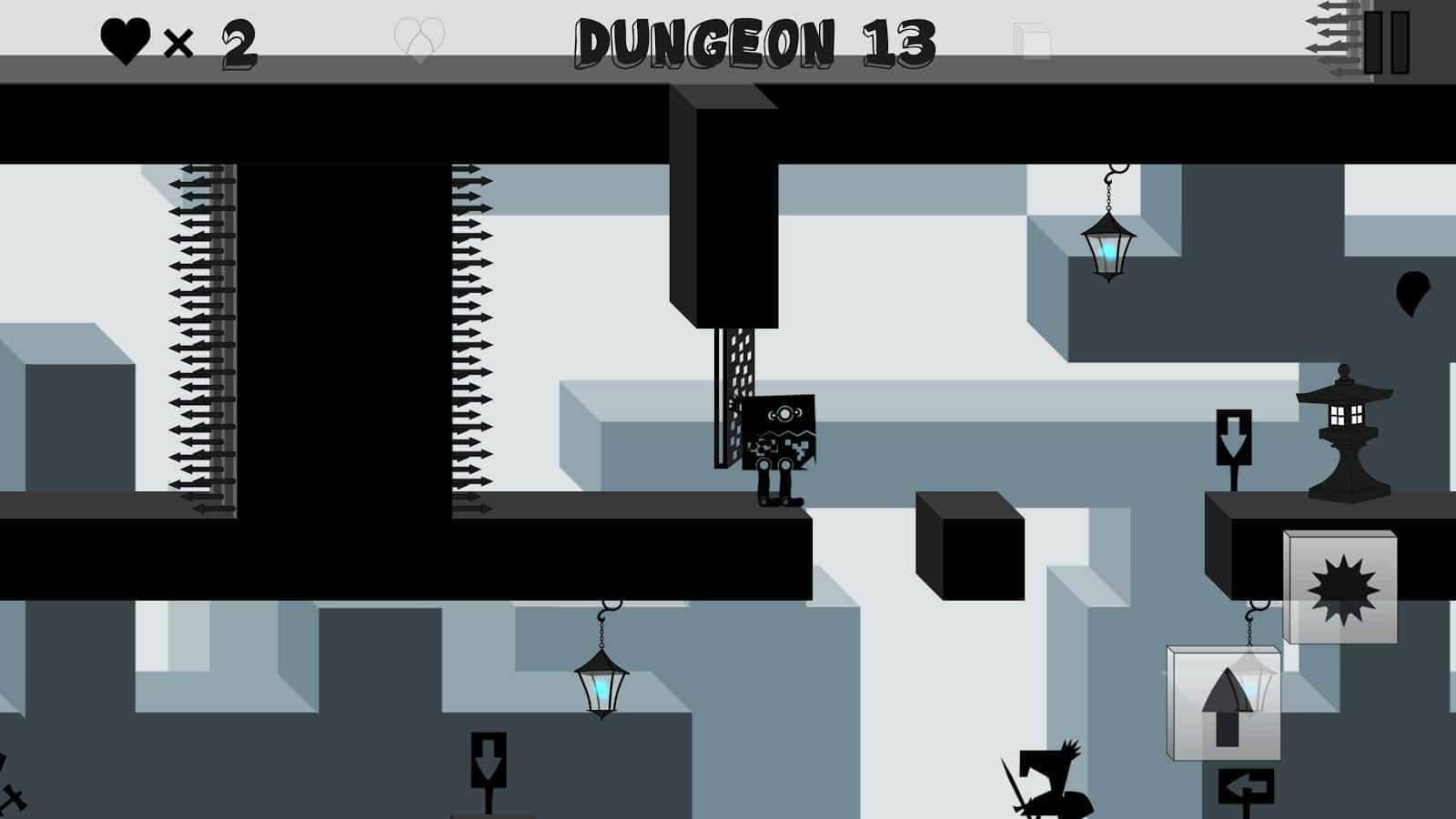 Block Trap – 2D платформер на андроид, про увлекательный квадратный мир. В этой игре вы будете управлять принцем, которому необходимо выбраться из подземелья, в которое его заточил ложный король. Путешествуйте по опасному миру полному ловушек и врагов и старайтесь добраться до дворца для того чтобы свергнуть короля и стать законным наследником королевства блоков. Обходите опасные ловушки, стреляйте в приближающихся к вам солдат и ищите выключатели у ворот для быстрого побега из подземелья. Пройдите все 25 опасных подземелий и откройте для себя дополнительные бонусные уровни. Не забывайте собирать кубики, которые подарят вам дополнительные жизни.