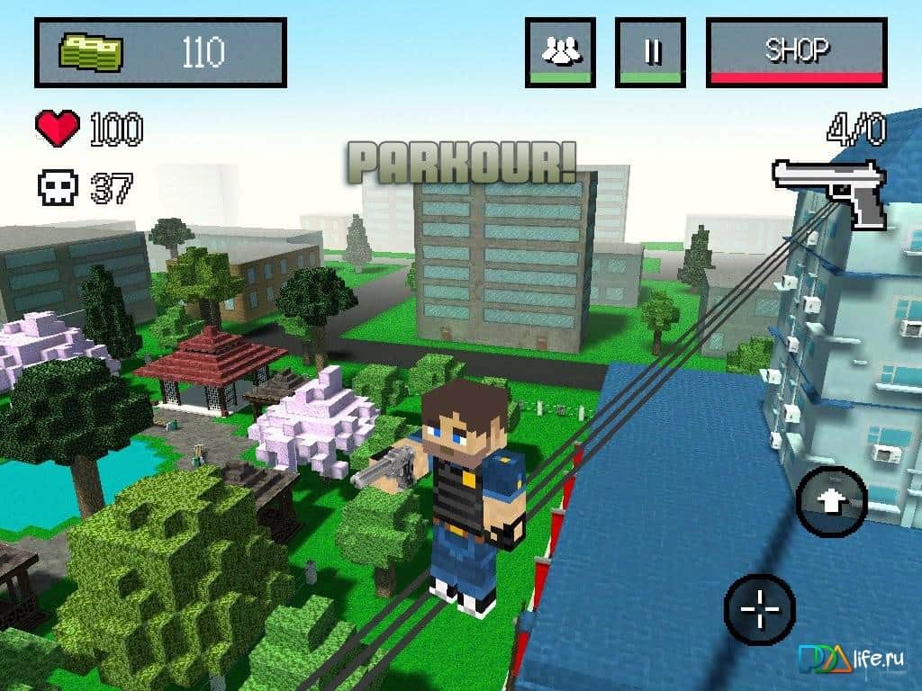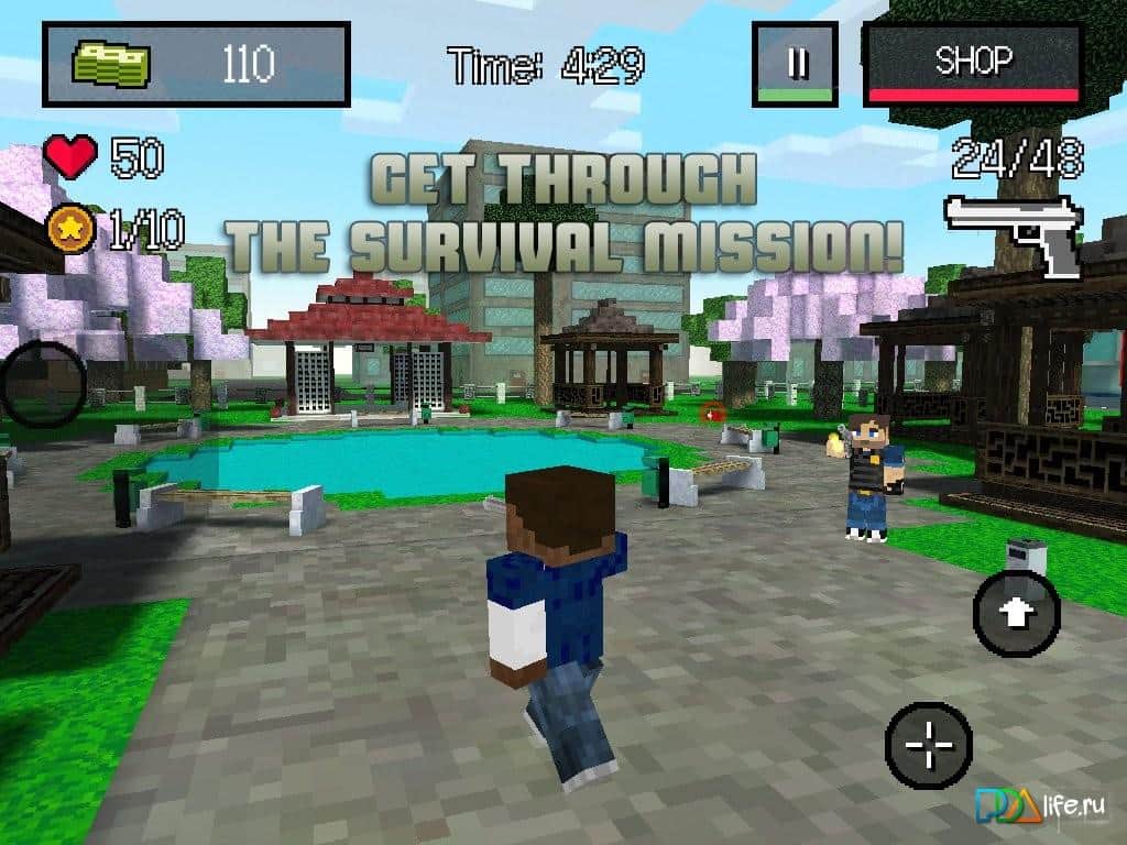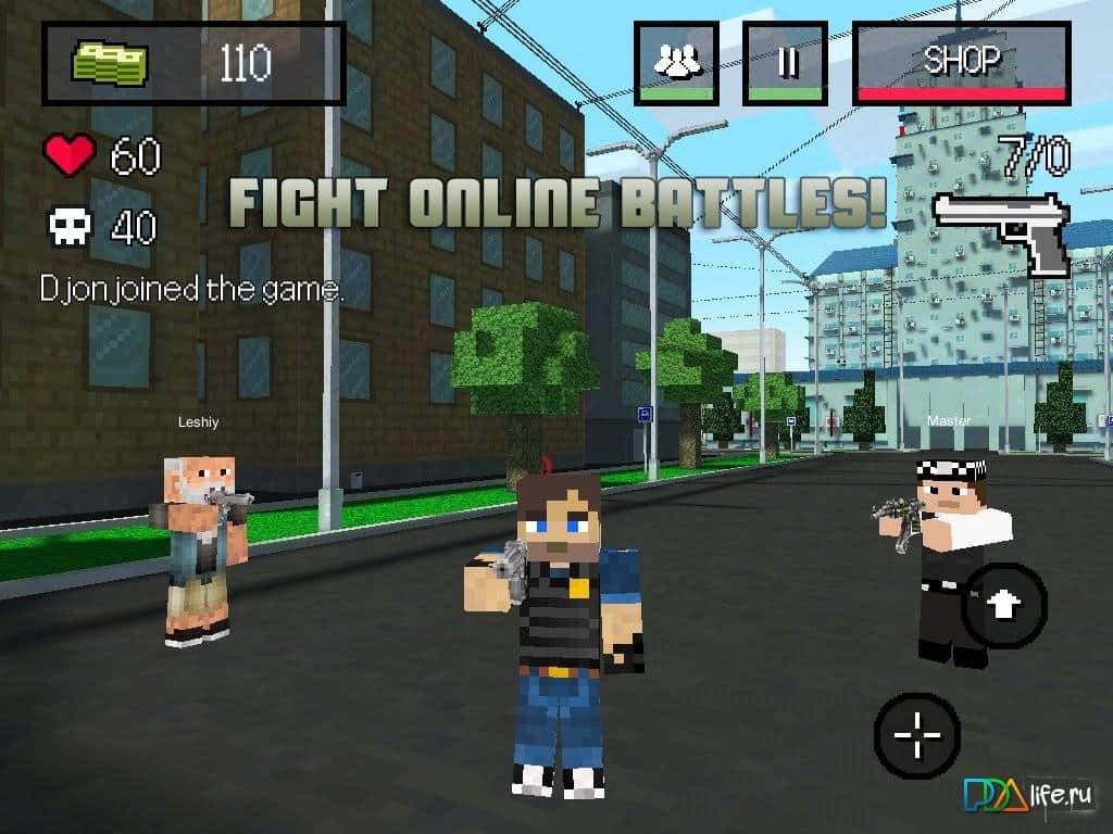 BLOCK WARS - Mine Mini Shooter - Пиксельный шуттер на андроид, сделанный в сите Minecrafta. Действия игры происходят В Блок-сити, где идет настоящая война. В вашем распоряжении полная свобода действий, хотите просто бегайте, хотите выполняйте миссии, или же примите участие в мультиплеерной баталии. Так же в игре есть режим выживание.